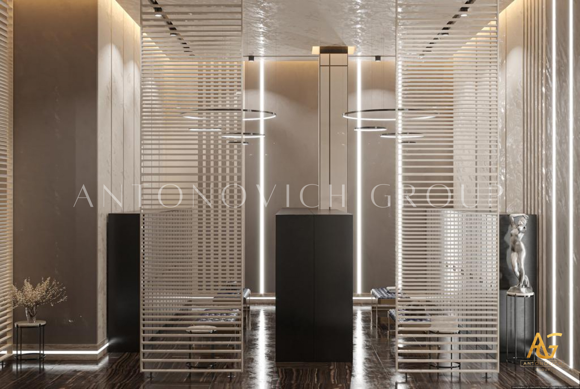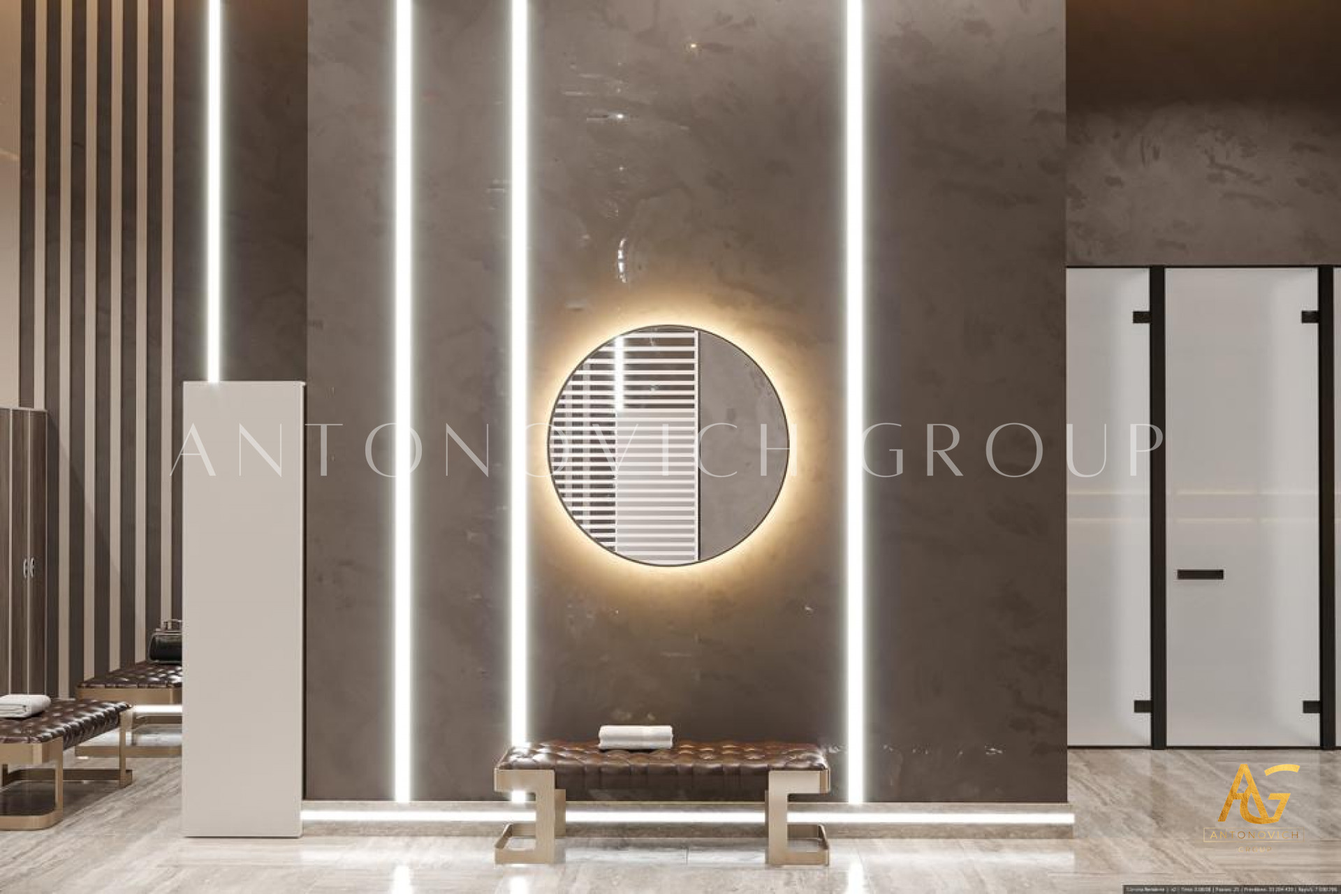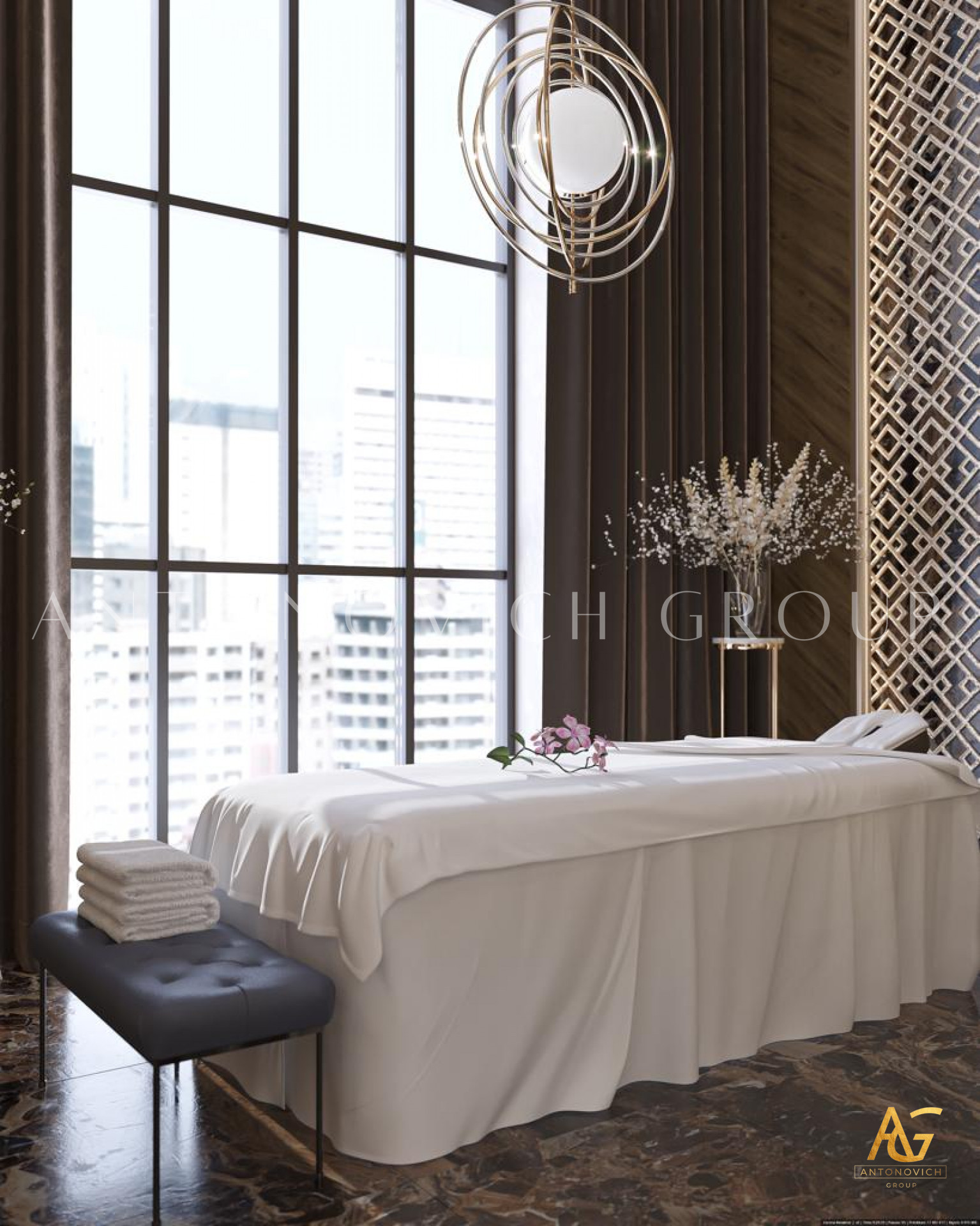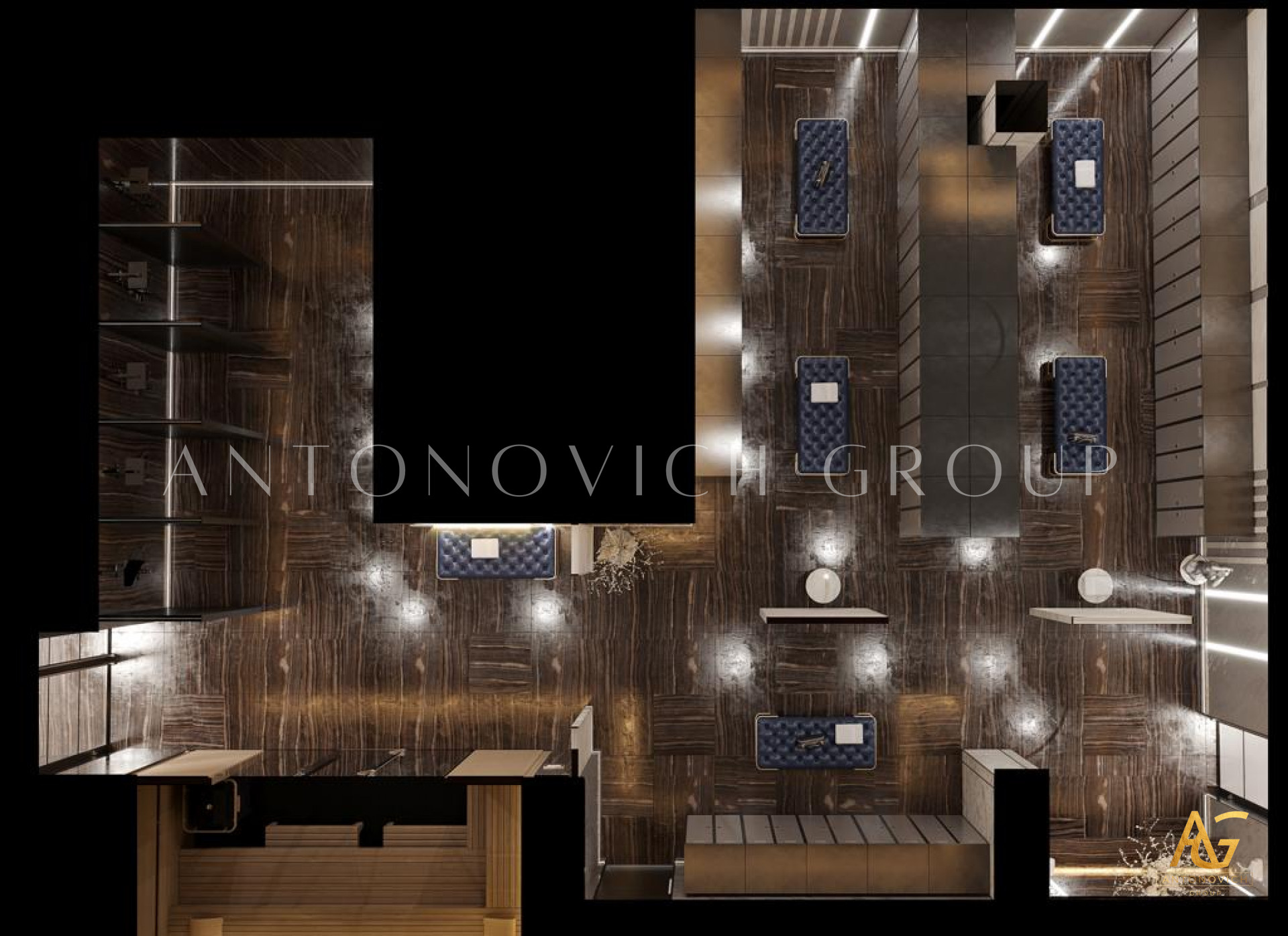 إن غرفة تبديل الملابس في التصميم الداخليفي الامارات هي واحدة من أكثر الأماكن استخدامًا في السبا. لذا يجب أن يكون المنتجع الصحي ، مثل هذا الديكور الداخلي الفاخر في دبي ، الذي أنشأته شركة شركة تجهيز السبا المشهورة عالميًا لاكشري انتونوفيتش ديزاين مع أفضل مصممي الديكور الداخلي في دبي فانه تصميم داخلي فسيحًا ومرتبًا. وينضح التصميم الداخلي الفاخر والمتطور في دبي بأجواء جميلة وأنيقة ويشتمل التصميم الداخلي المذهل للسبا على مجموعة متنوعة من الأنماط التي تعمل معًا لإنشاء عمل فني. فإنه مثل متحف ، ولكن مع التركيز على التصميم الداخلي الراقي. أحد الجوانب الأكثر لفتًا للانتباه في تصميم المنتجع الصحي الحديث هذا هو المزيج الرائع من اللون البني والأسود والإضاءة الصحيحة. حيث يعد مفهوم اللون الأسود من خلال الجدران والديكورات أحد مجالات التركيز الأساسية لتصميم السبا الحالي. تجمع لاكشري أنطونوفيتش ديزاين ، مع أفضل مصممي الديكور الداخلي في دبي ، بين المواد الفاخرة التي تم تشطيبها بتفاصيل مصنوعة خصيصًا لتعزيز تعقيد وأناقة هذا التصميم الداخلي الحديث.
