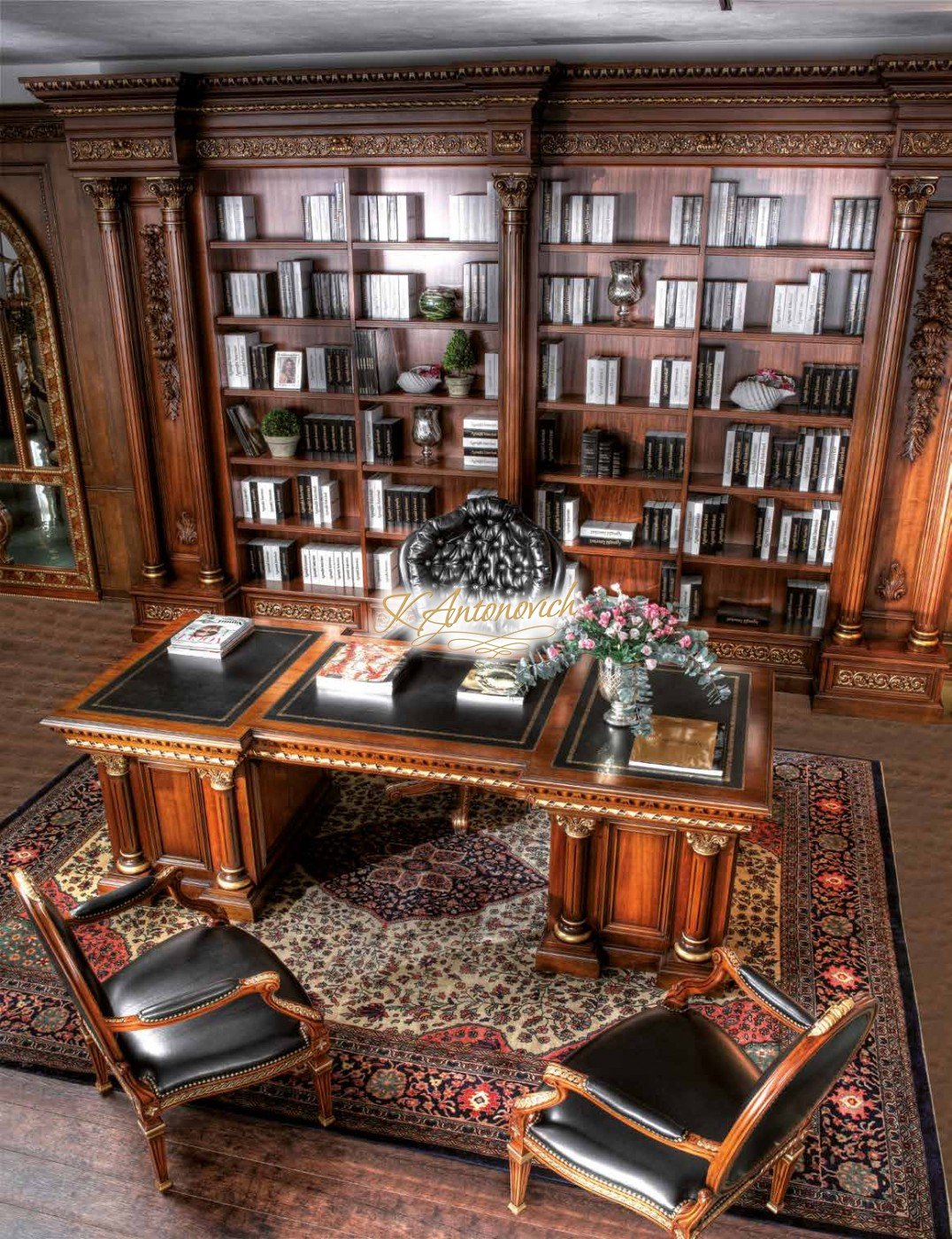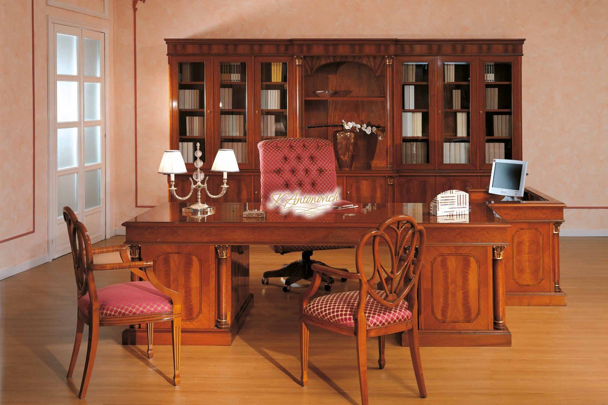 تصميم داخلي للمكتب بنمط خشبي كلاسيكي جميل