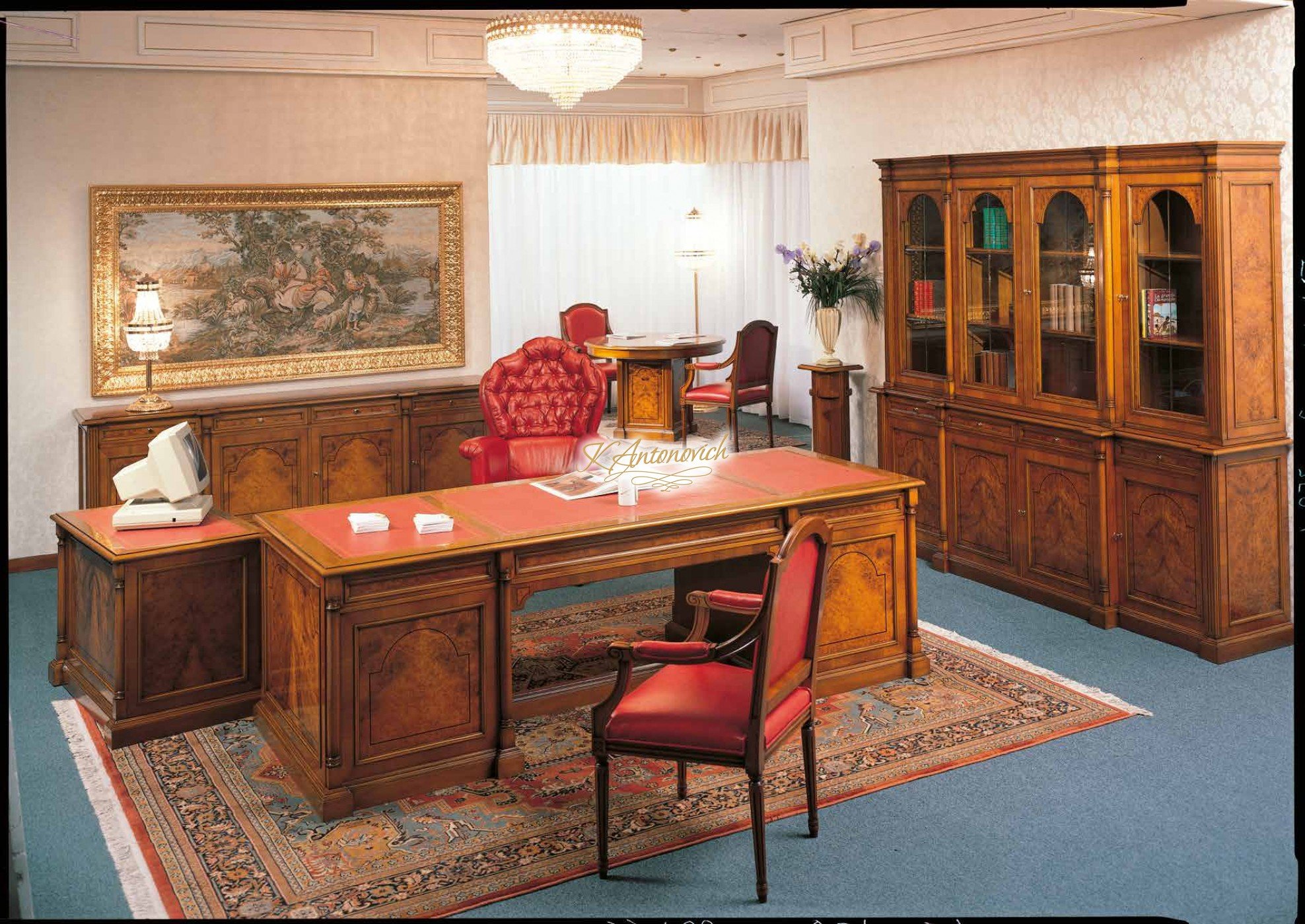 ديكور المكتب جيد جدًا مما يجعل هذا التصميم الداخلي الكلاسيكي متكاملًا. يتماشى الطراز والأثاث الذي تم استخدامه مع بعضهما البعض تمامًا مثل الرف المشجر والكراسي ذات اللون البني الداكن جنبًا إلى جنب مع التفاصيل الجميلة. يضيف السجاد أيضًا إلى المظهر الكلاسيكي للتصميم الداخلي للمكتب العلوي. يحتوي التصميم الداخلي الفاخر للمكتب على جميع الميزات التي تحتاجها للحصول على لوحة إنتاجية تفخر بها. ميزاتها الفاخرة فريدة من نوعها. يعد تحقيق تصميم داخلي جميل للمكتب مهمة سهلة مع لاكجري أنتونوفيتش ديزاين.