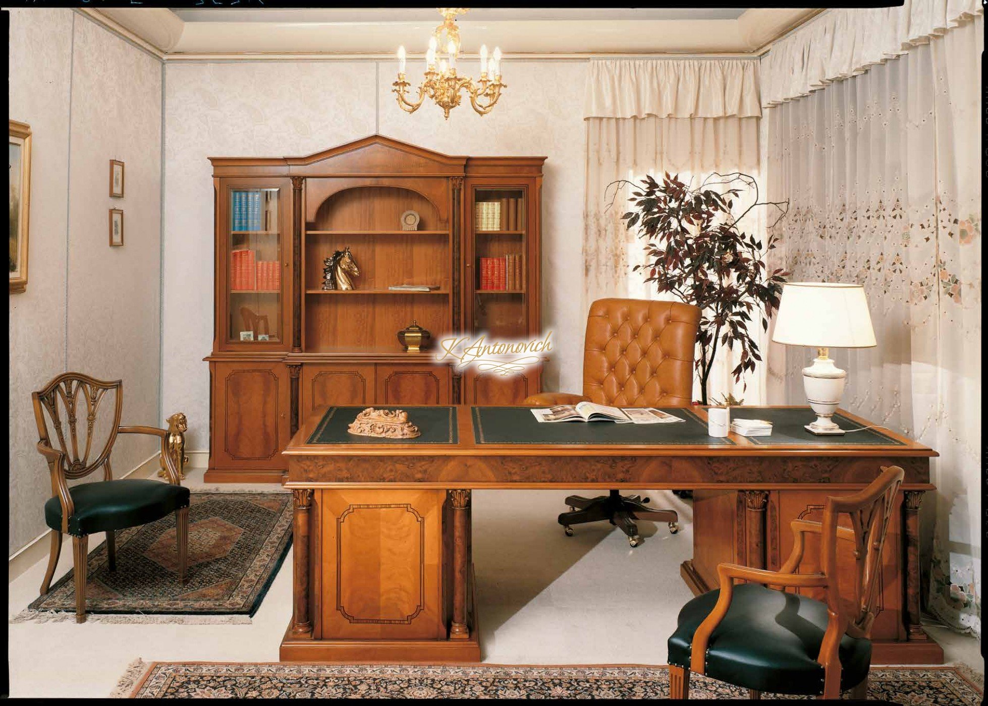 تصميم داخلي للمكتب بأسلوب خشبي كلاسيكي جميل