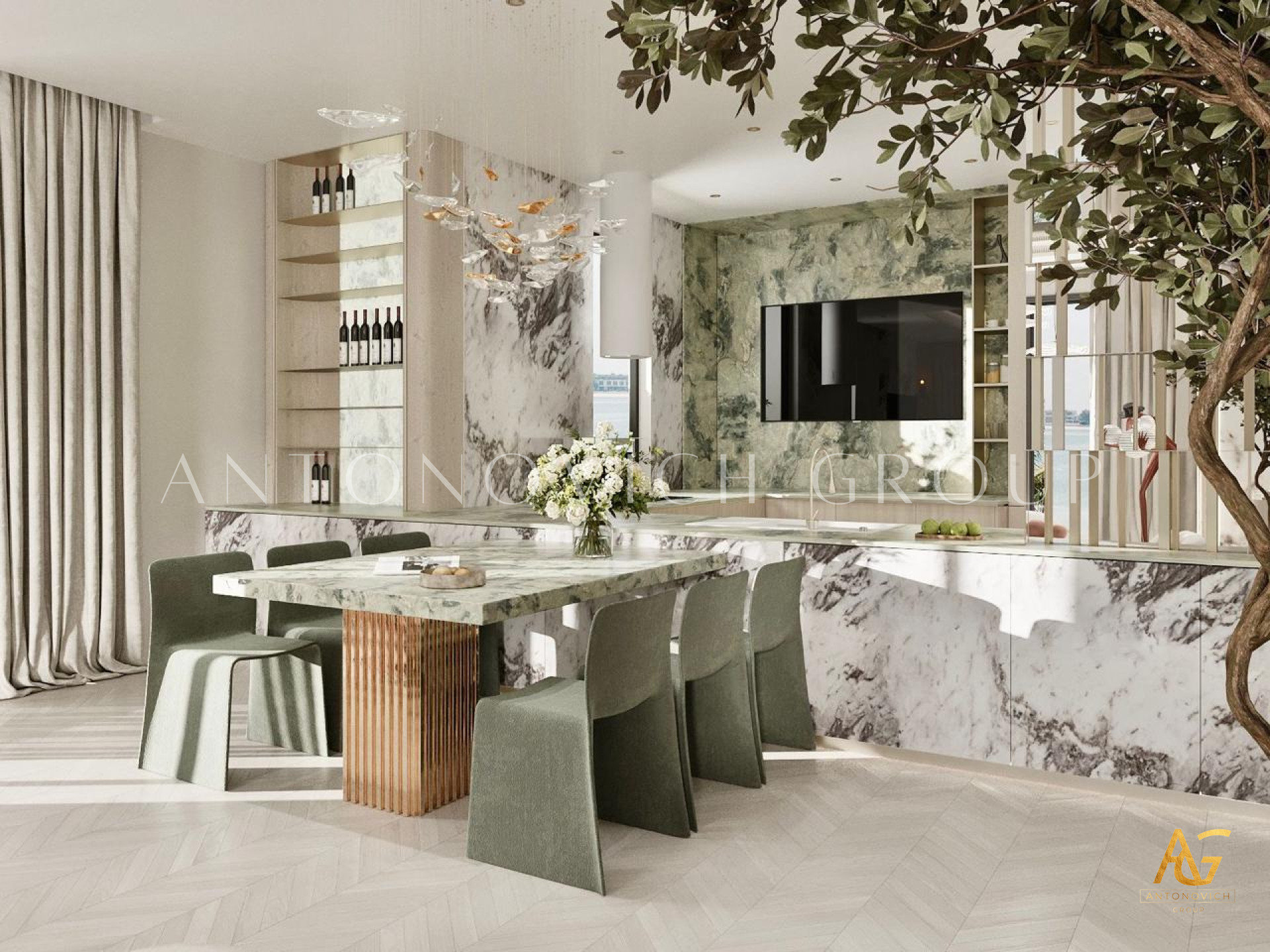 تصميم غرفة المعيشة العصرية يدور حول البساطة والخطوط النظيفة والمساحات الهادفة. في دبي، حيث المعيشة الفاخرة جزء من أسلوب الحياة، تدمج مجموعة أنتونوفيتش هذه المبادئ الأساسية مع لمسة من البريق والتهذيب الثقافي. نهجهم يجمع بين اللوحات المحايدة والقوام عالي الجودة وقطع الأثاث المصنوعة حسب الطلب التي ترفع من أجواء الغرفة. من خلال إدخال حلول النجارة الأنيقة والأثاث المخصص، يتم تحويل كل غرفة معيشة إلى مركز أنيق وعملي للاسترخاء والتجمعات الاجتماعية.