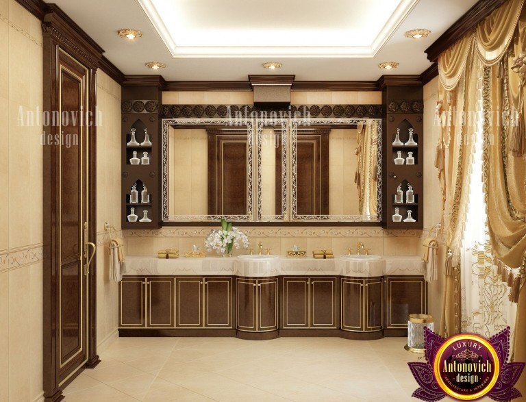 يفضل التصميم الكلاسيكي الأشخاص الراسخون الذين لا يحتاجون إلى إثبات أهميتهم. إنهم يكرمون التقاليد ويحترمون القيم العائلية. لذلك ، لإنشاء تصميم داخلي وديكور للحمام بأسلوب كلاسيكي ، ركز مصممونا من تصميم أنتنوفيتش الفاخر على التصميم الخارجي. تعتمد النتيجة النهائية للداخل على كيفية اختيار مواد التجهيز للجدران والأرضية. يختار المصممون رخامًا وجبسًا طبيعيًا عالي الجودة فقط ، بالإضافة إلى تصميم داخلي مكتمل بأثاث مجسم بعناصر شرقية وضوء منتشر. في الجزء الداخلي من هذا الحمام ، تكمل تفاصيل الستائر الكلاسيكية للوحة الذهبية مع لامبريكينيس والمعلقات ، ومرآة جميلة في إطار منحوت