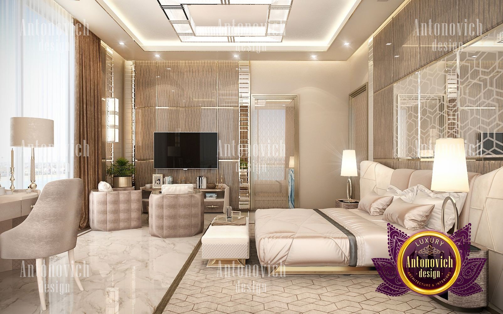 Having a glamorous luxury bedroom interior design has always been the dream of many. Luxury Antonovich Design has perfected the formula in creating a luxury space that translates to beauty and elegance. Similar to this luxury bedroom interior design in Dubai, the decor of the room is created in a way that glossiness is shown. Through the legend walls, the luxury bedroom interior design gives off an entirely stunning ambiance that is unmatched.