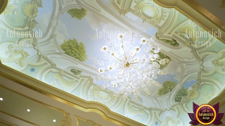 Unusual and exclusive is always in fashion. Therefore, the artistic painting of ceilings attracts an increasing number of admirers. Artistic painting of ceilings is a long-time method of fit-out. The uniqueness of the artistic painting by Luxury Antonovich Design is that any plot can be applied to the ceiling surface, which allows getting a unique interior solution for any room. Ceiling painting is one of the most interesting and challenging tasks for designer and artist. Everything is important here: a strong drawing, possession of a light and aerial perspective, special skills of applying paints.