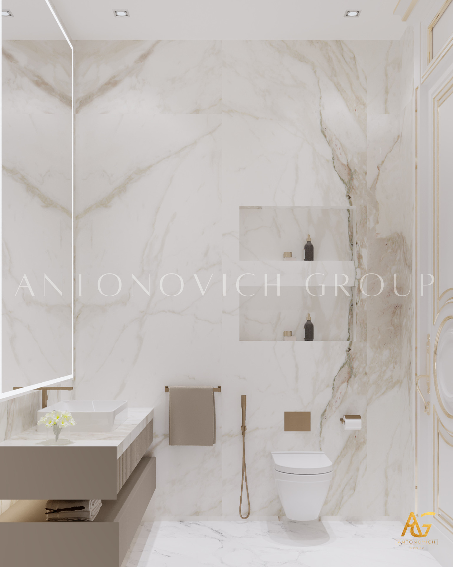 Each villa bathroom in Abu Dhabi is designed with a personalized approach, reflecting the client’s preferences and lifestyle. The design team carefully selects premium materials—such as Italian marble, natural stone, and brushed gold accents—to achieve a refined and luxurious ambiance. With attention to every detail, from layout and lighting to fixtures and finishes, Antonovich Group ensures that each bathroom delivers both visual appeal and lasting comfort.
