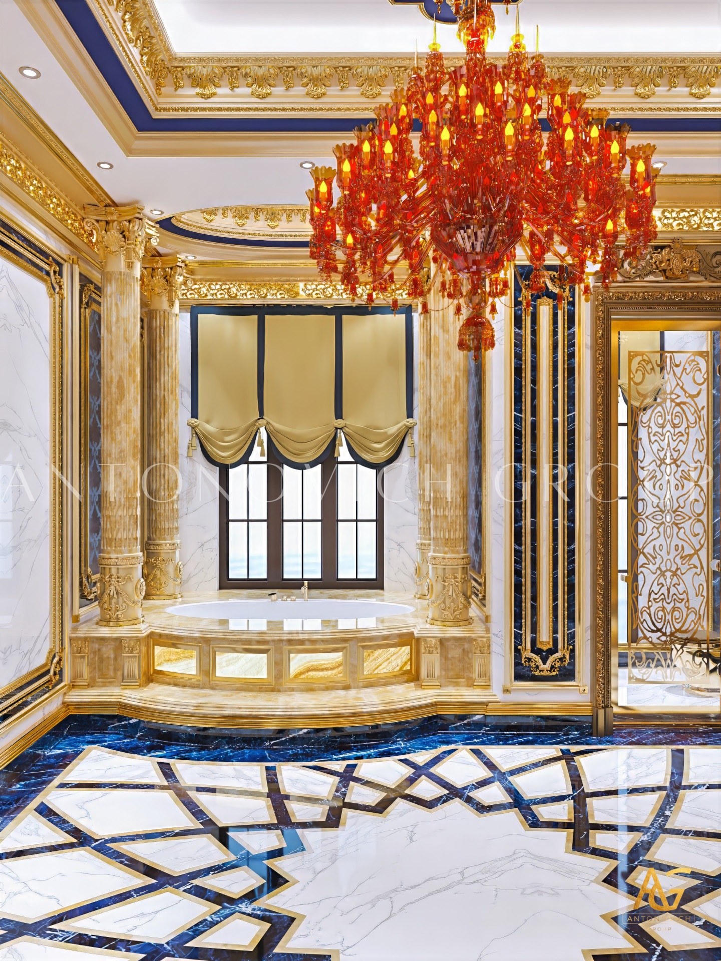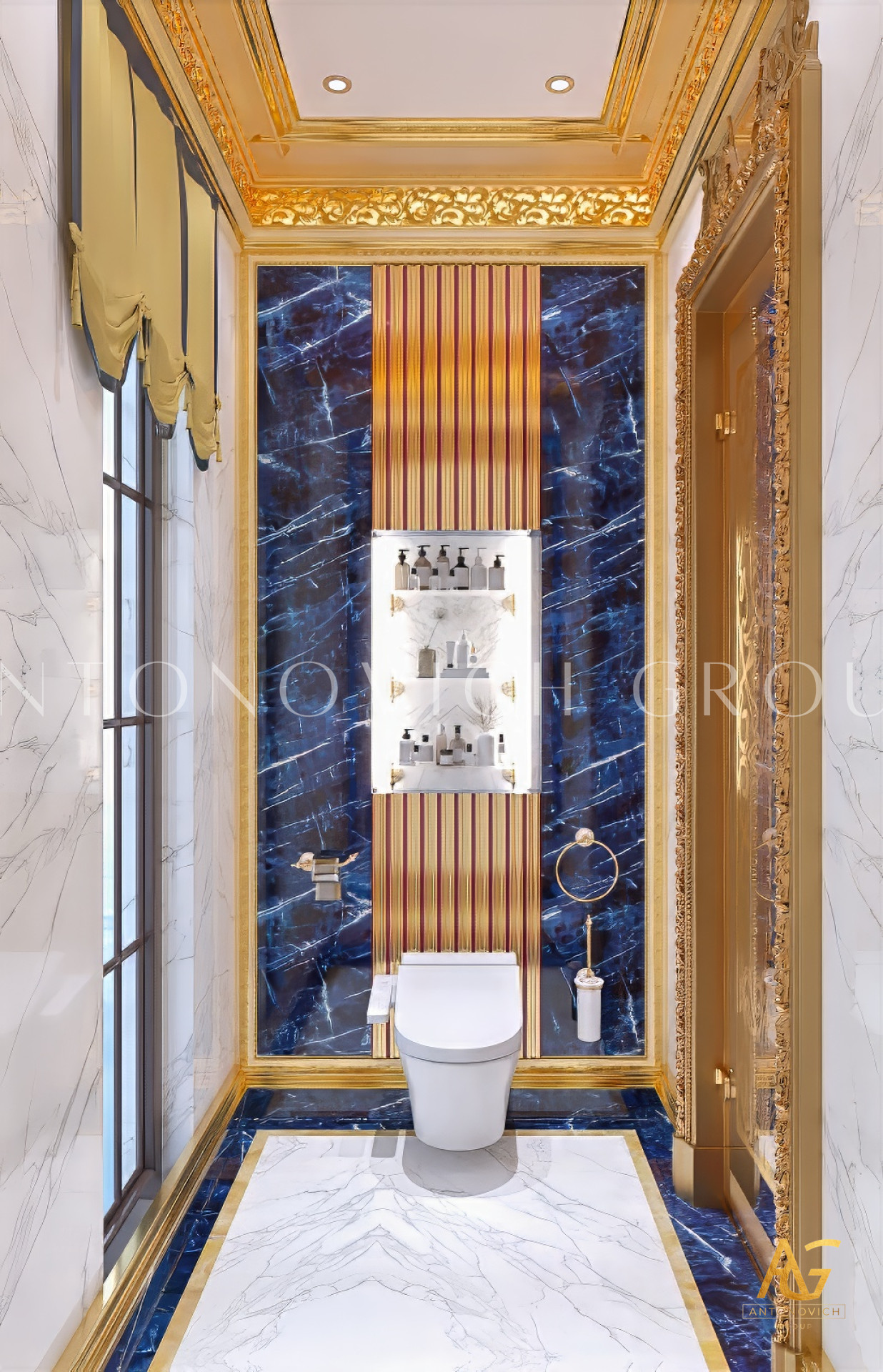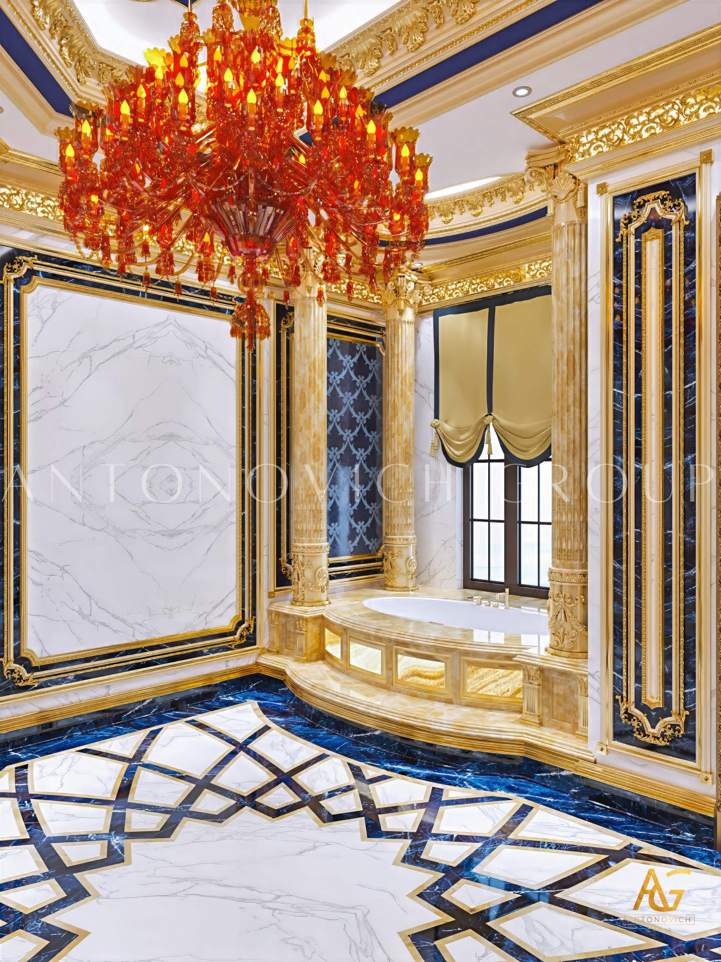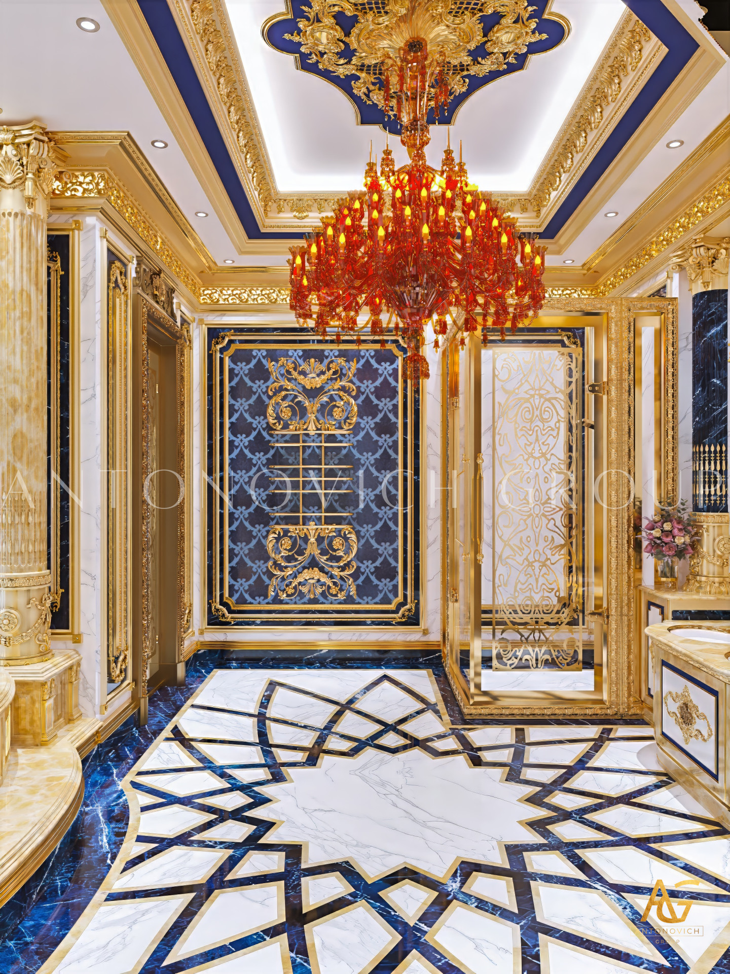Lighting is a defining element in Antonovich Group’s bathroom interiors. They incorporate soft ambient lighting, accent fixtures, and elegant chandeliers to add warmth and depth to the space.
