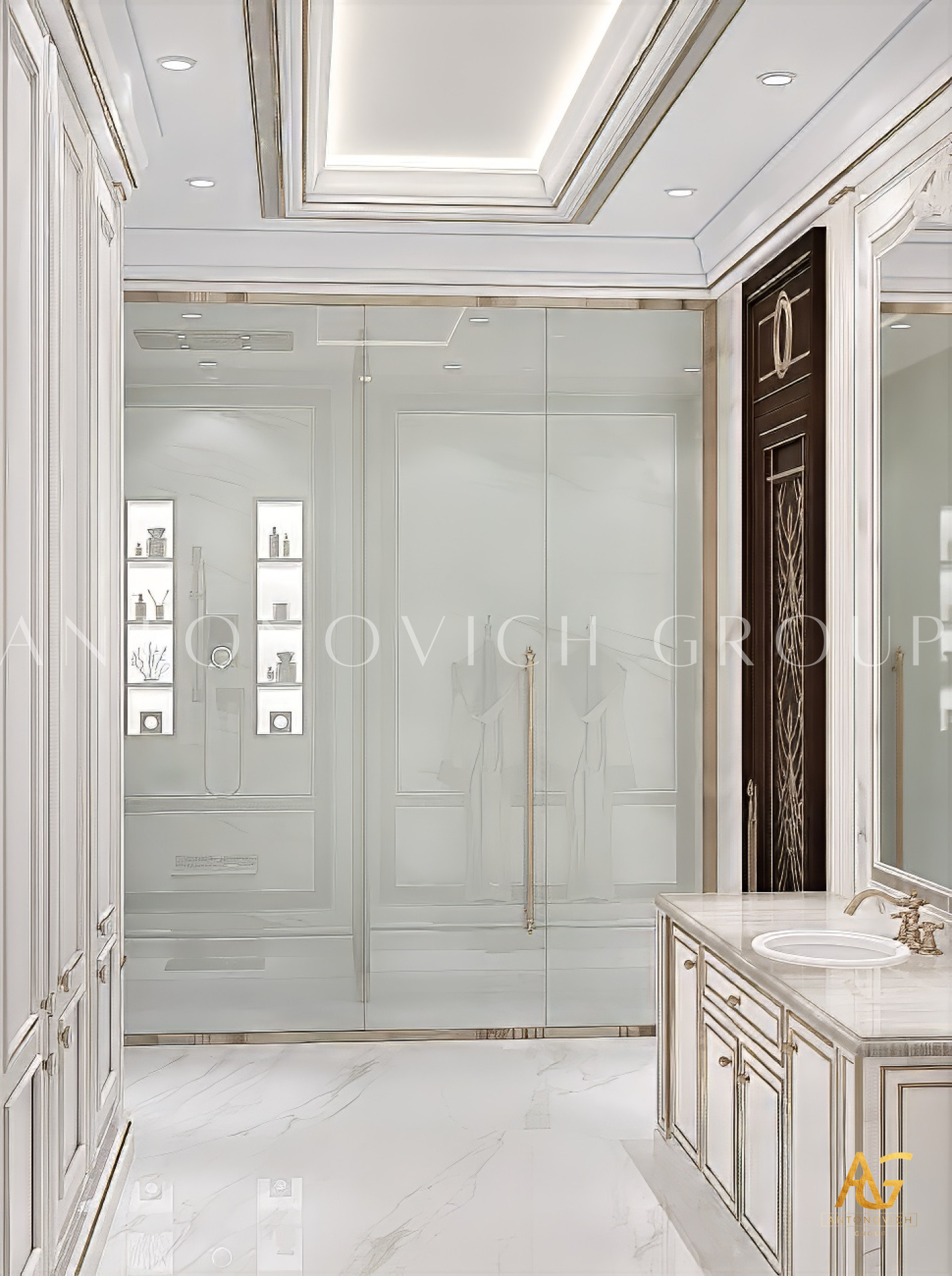 Every bathroom designed by Antonovich Group carries a touch of exclusivity. Decorative lighting fixtures, stylish mirrors, elegant vanities, and statement bathtubs are selected or customized to fit the project’s concept. Even the smallest details — from towel bars to faucets — are chosen with precision to create a cohesive design narrative.