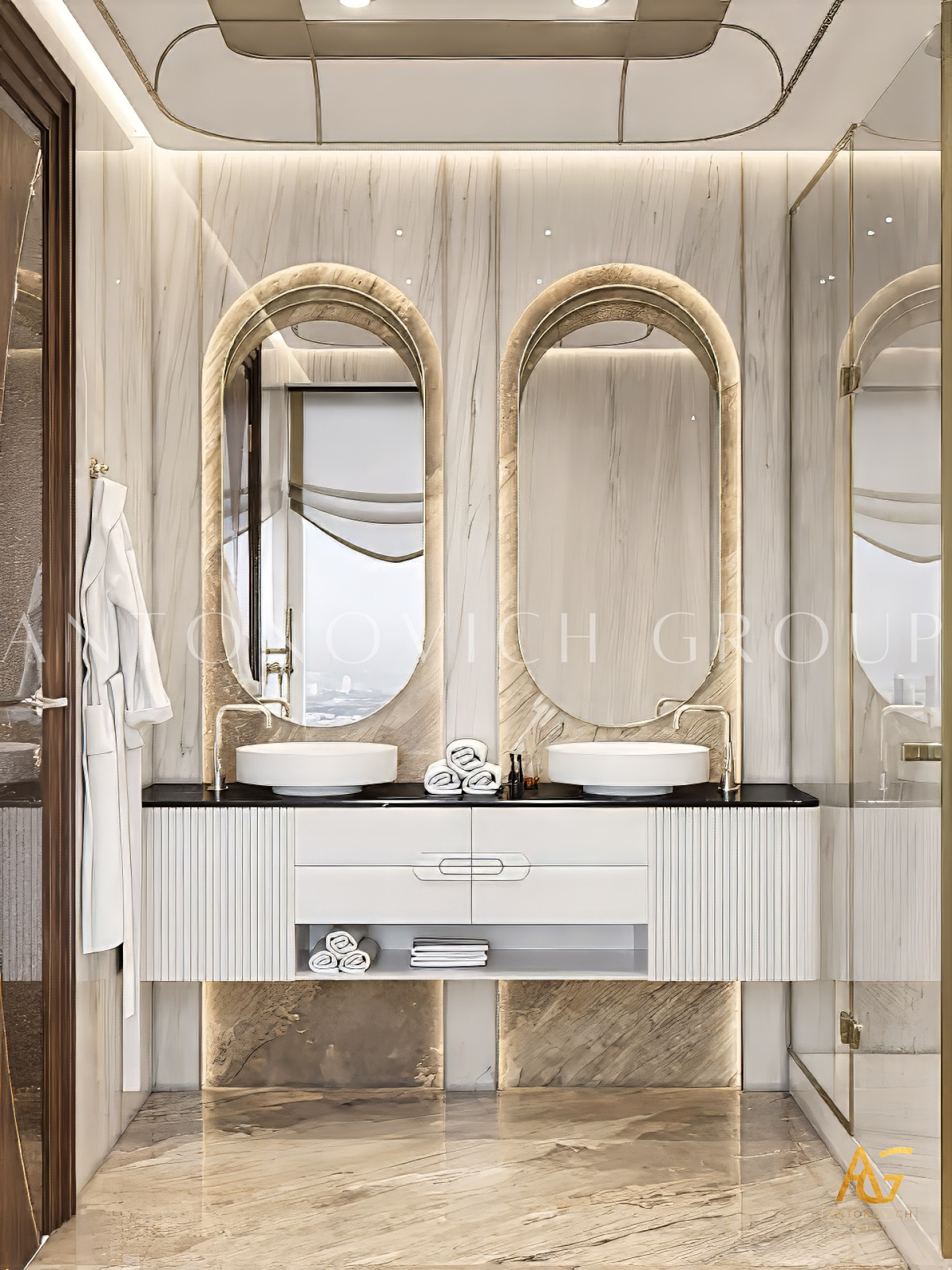 Modern luxury living demands more than just beautiful interiors — it requires smart, functional, and elegant design solutions that elevate everyday routines. Antonovich Group has mastered the art of creating luxury bathroom interiors with integrated closet sections, combining practicality with exceptional style. Their expertise ensures that every detail — from spatial planning to fine finishes — results in a private sanctuary that embodies comfort, sophistication, and seamless organization.