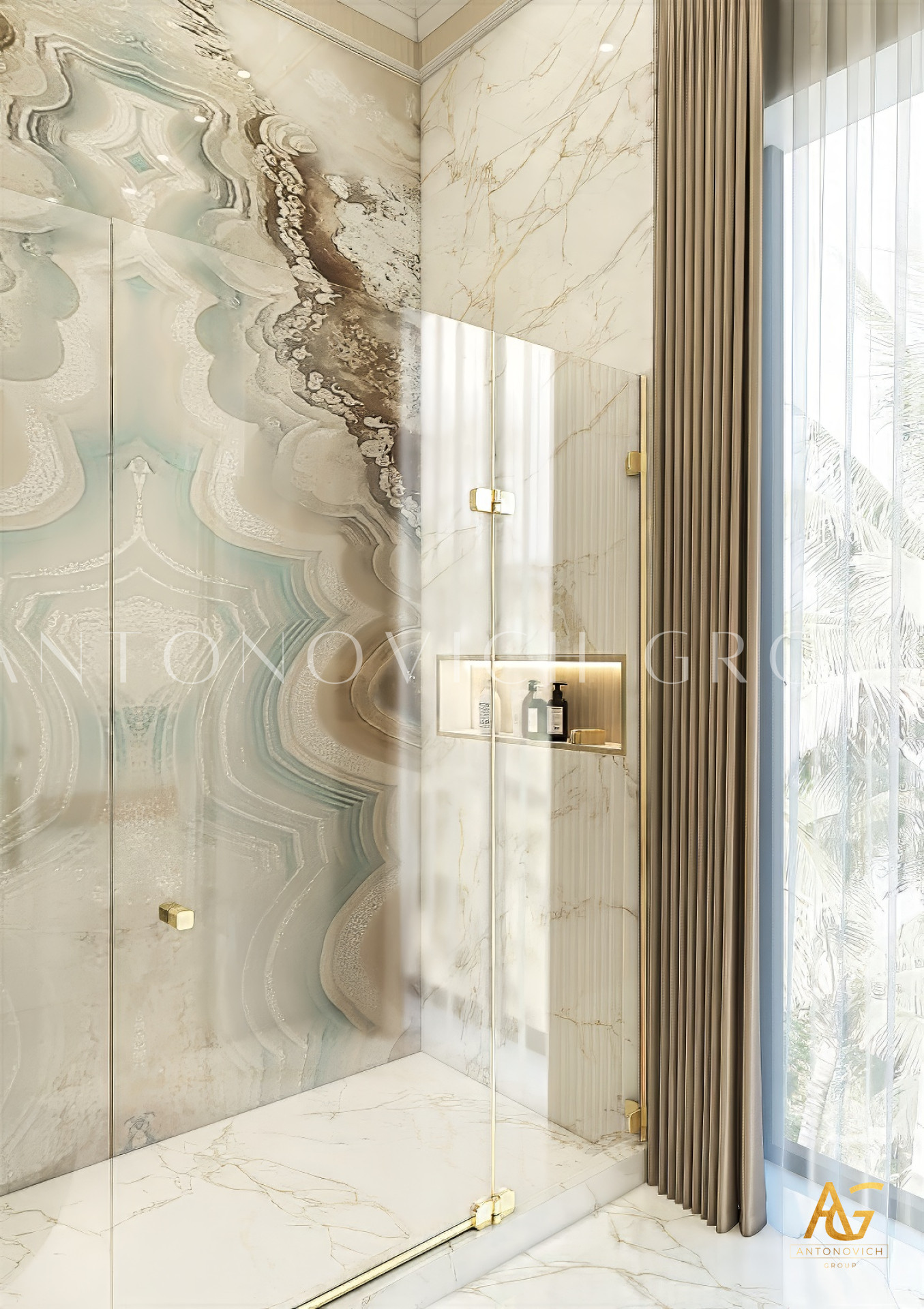 What sets Antonovich Group apart is their attention to bespoke detailing. Every element—be it gold-leaf accents, intricate tile inlays, or tailored cabinetry—is crafted to match the client’s vision. The group’s in-house manufacturing and material sourcing allow for complete customization, ensuring exclusivity in every bathroom interior design project.