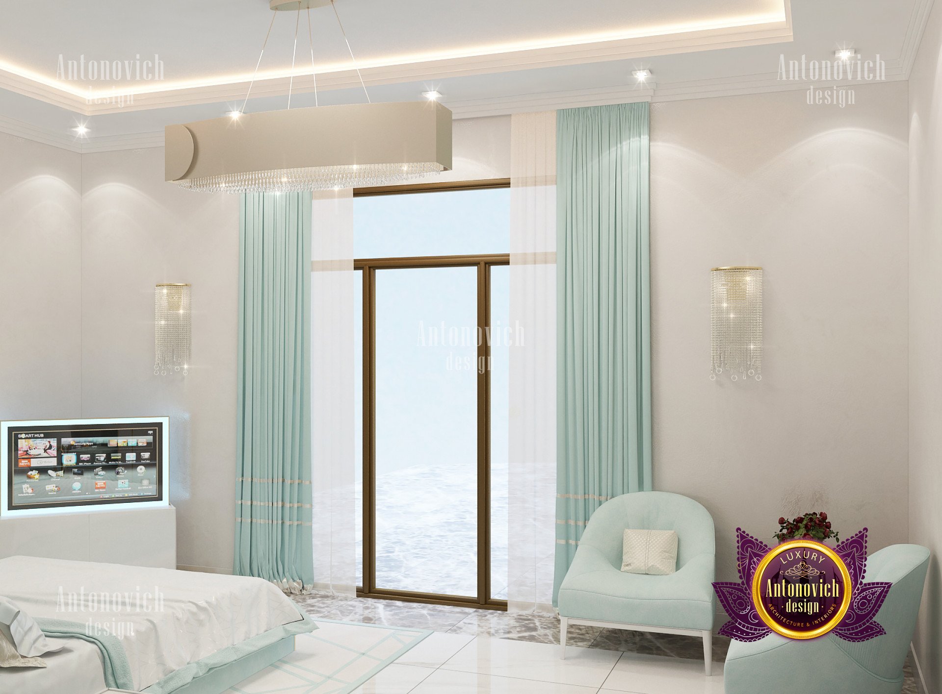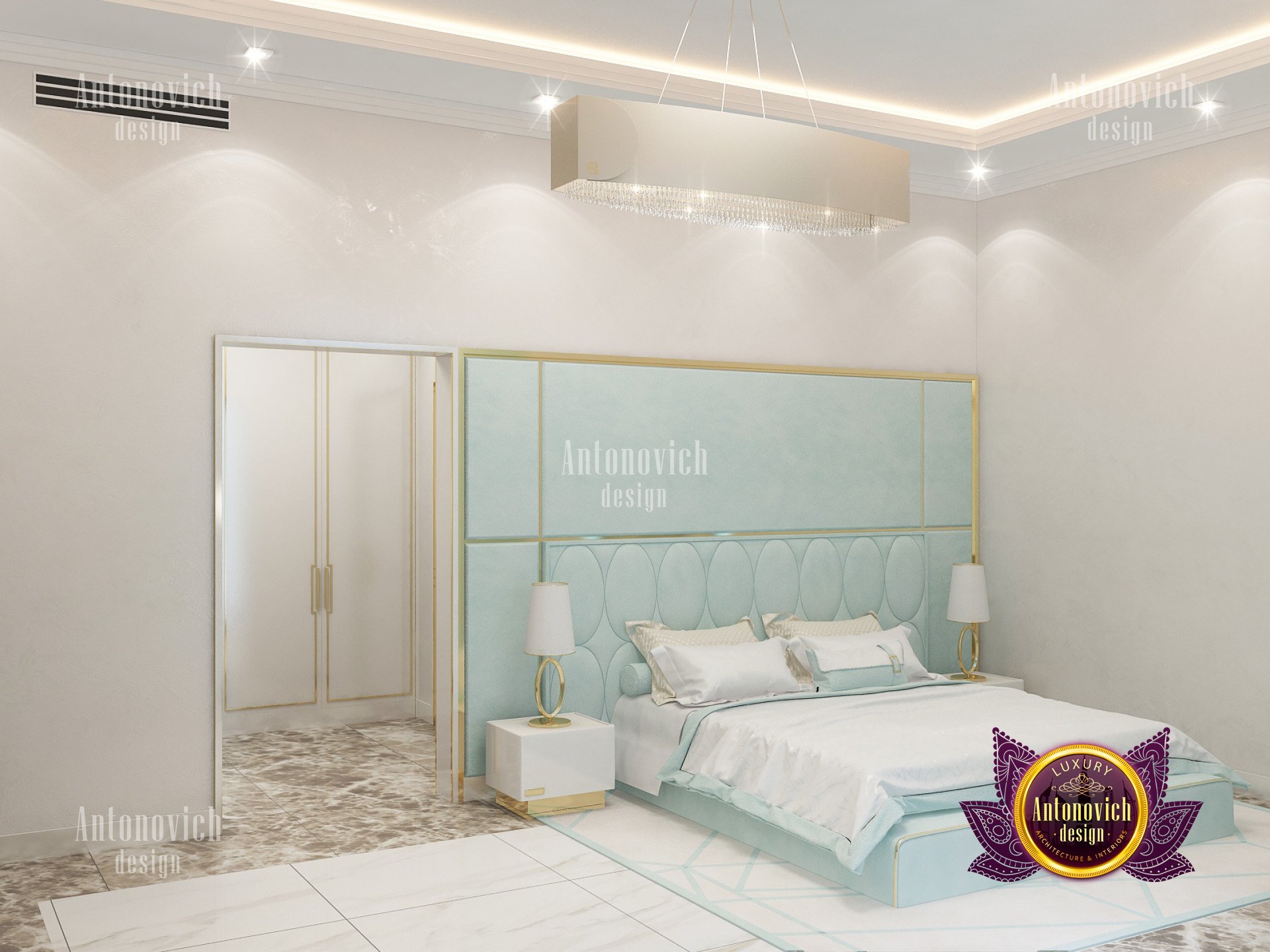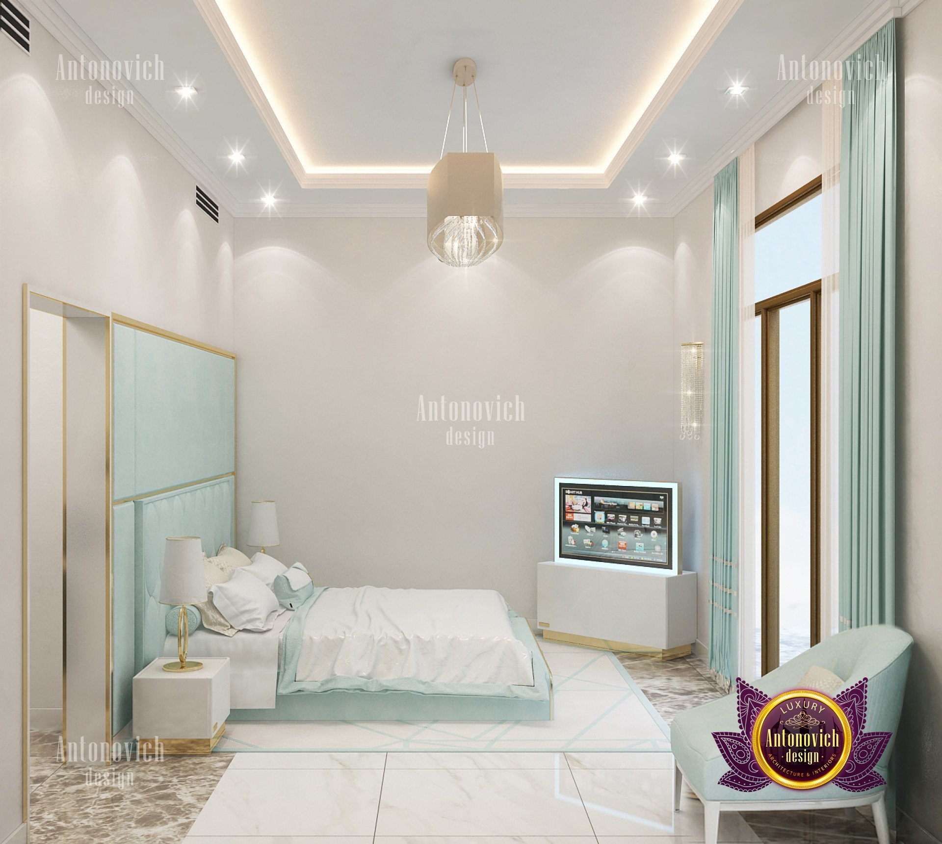 A bedroom with turquoise interior elements from Luxury Antonovich Design will be the room that will relieve you of fatigue and stress, as well as turquoise in addition to warm tones, soothes and inspires peace and inner harmony. In the interior of the bedroom, our designers used this color to bring a touch of brightness. Turquoise bedroom, in the first minutes will cause double feelings.