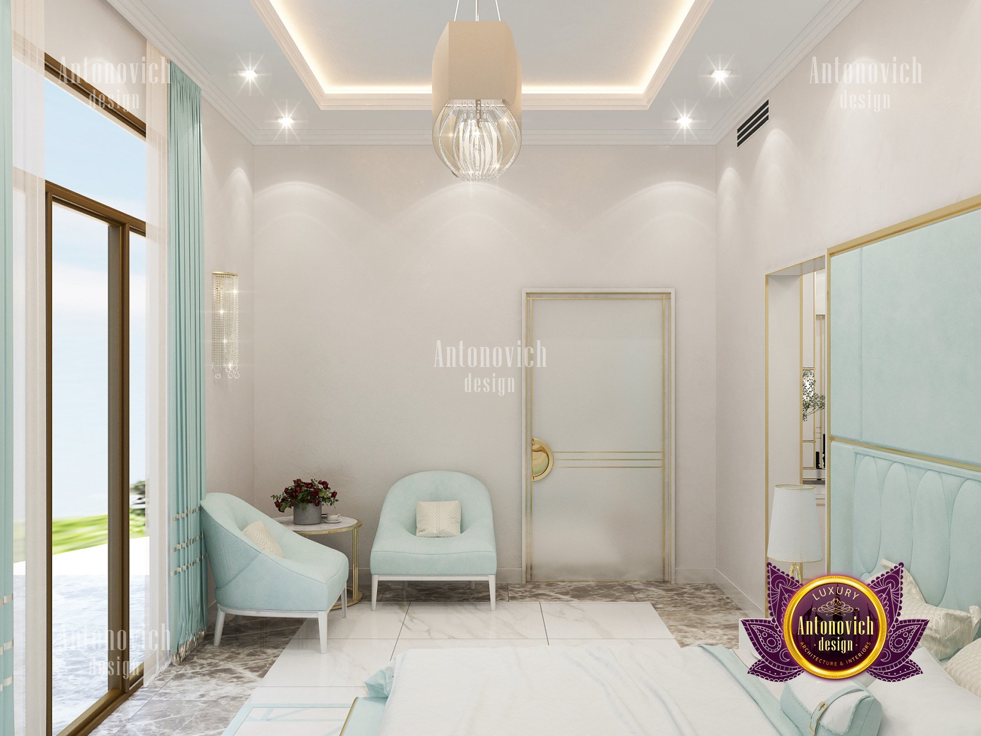 BEDROOM INTERIOR WITH TURQUOISE ELEMENTS