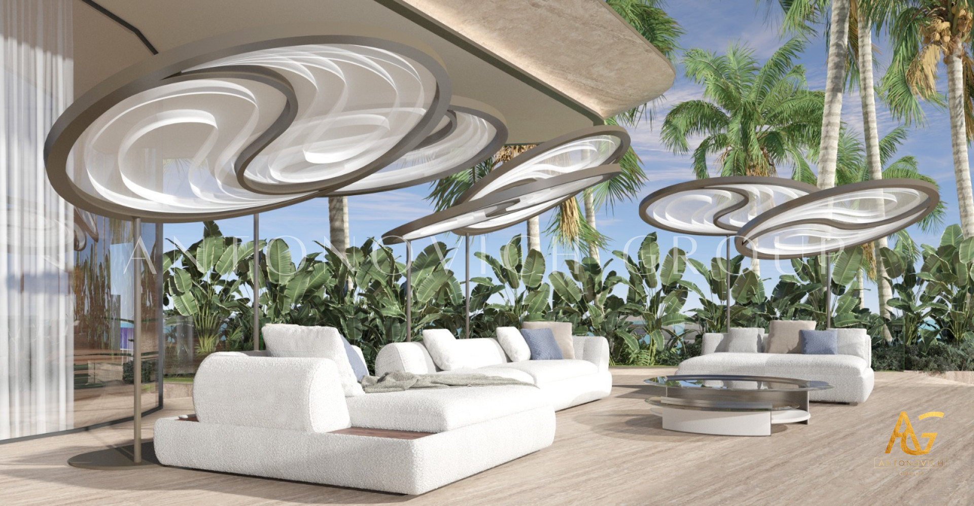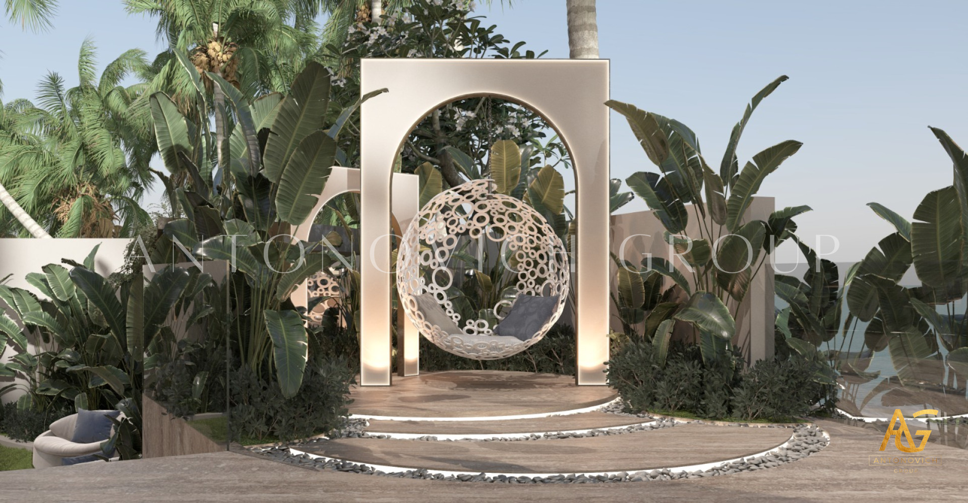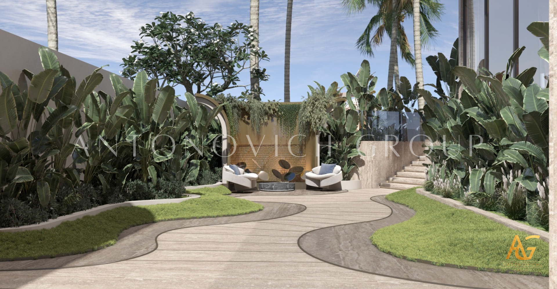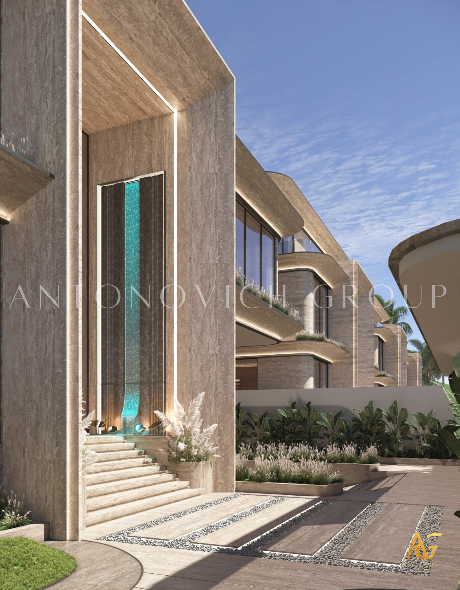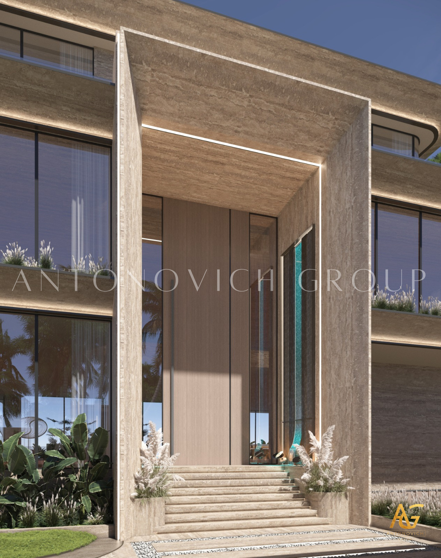 There are thousands of articles and posts about interior designs ideas. But what about exterior? Is it less important? The answer is — no! Luxury Antonovich Design Company always pays great attention to the overall picture and attaches big importance to the exterior design of every house project. This amazing contemporary industrial house project by Luxury Antonovich Design team of designers and visualizer can show you for 100% what does it mean to have a house with modern-looking facade. For this house exterior design decoration we have selected the most high-qulity building materials and used new and emerging technologies. In this project we put in place effective mechanisms and structures, used the combination of modern materials — glass (tinted glass windows) and concrete, varnished timber and natural stone — dense granite. Flowing water of fountains, exquisite marble elements, warm colors of herbs and wood — all together they merge to create a unique, noble atmosphere.