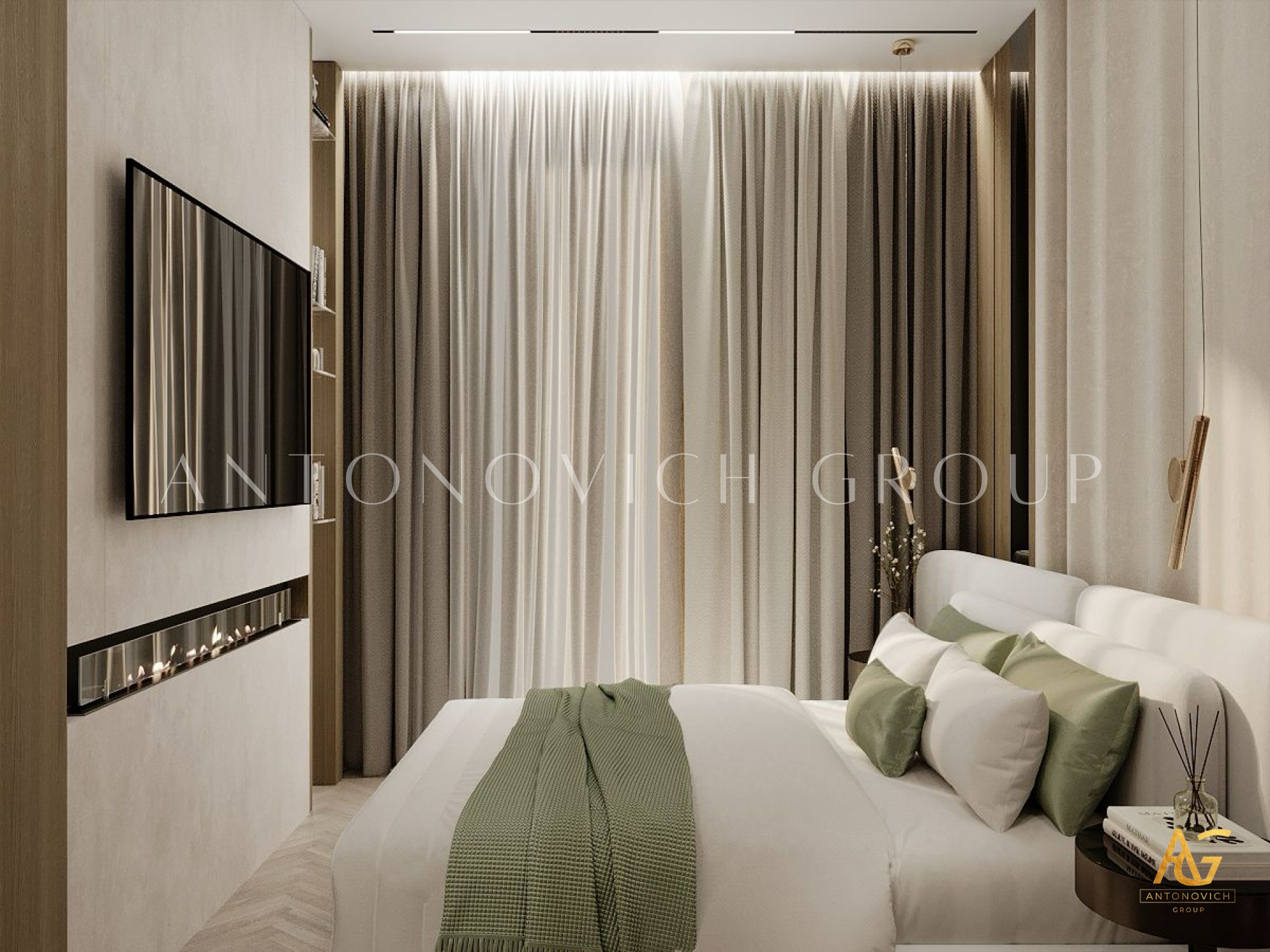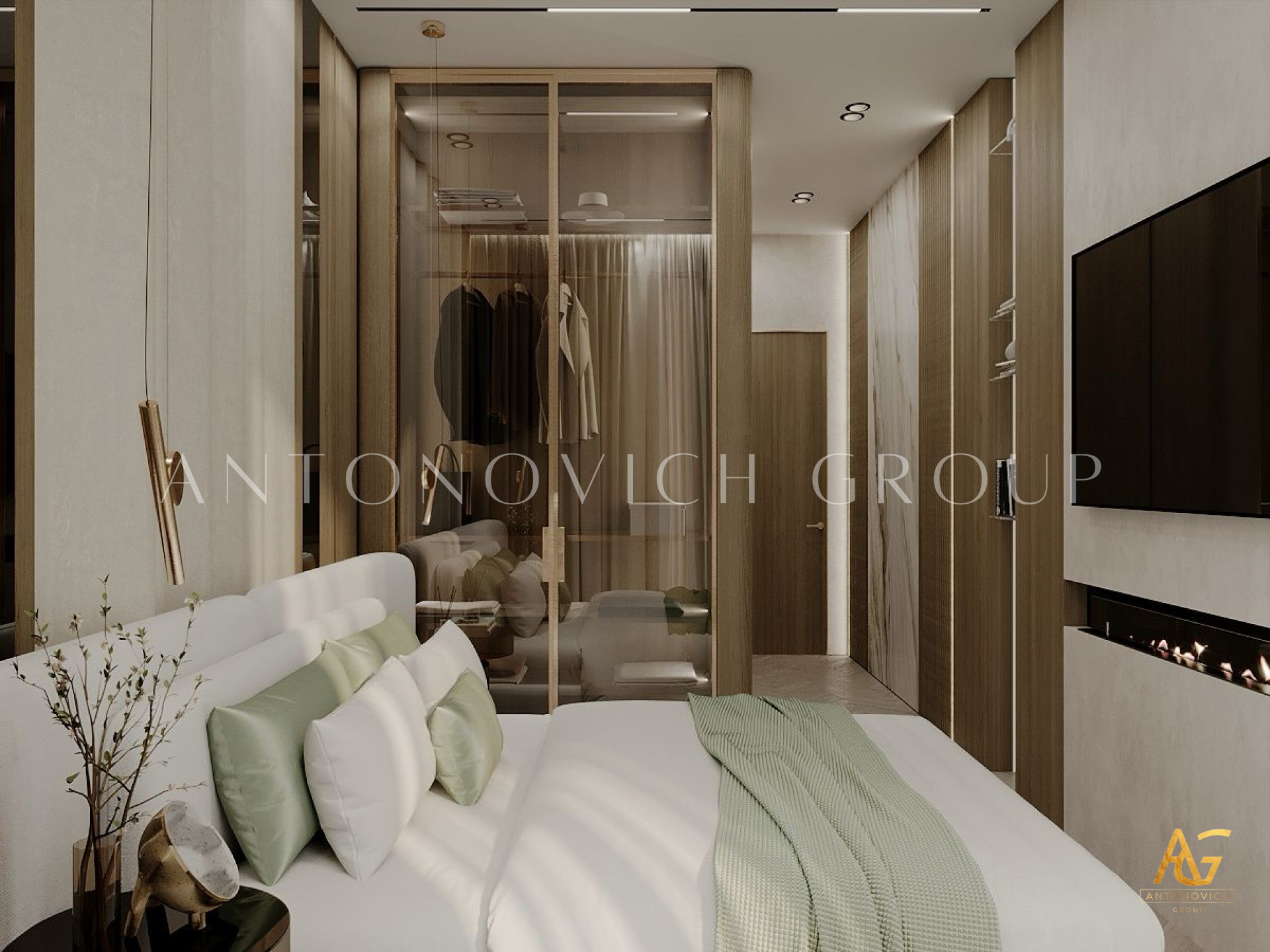 The bedroom design process is approached seriously by our dedicated professional team of Luxury Antonovich Design, because this room is created and decorated for sleeping. It is the space, in which the person relaxes and has a rest as much as possible. Selecting beige in a mix with brown of different shades as the main color of the bedroom, we used all the necessary techniques that will help to avoid monotony, and make the bedroom design comfortable and attractive.