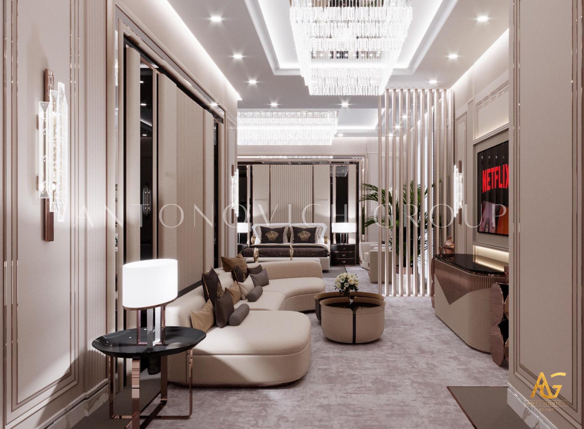 Every day, the magnificent master bedroom interior design provides all you need for a good nights sleep. The fantastic design will undoubtedly be noticed! The rooms themes are meant to be extravagant and sumptuous. This great apartment design is completed with gorgeous furnishings and décor. The shelves and racks are beautifully crafted with curved tops. The modern minimalist bedroom interior design also includes fantastic lighting. This interesting idea brings your space to life and creates a more pleasant atmosphere. This modern minimalist bedroom interior design is one for the books, and we know youll love it! The luxurious house bedroom interior designs cool and beautiful cupboards contribute to the rooms spaciousness.