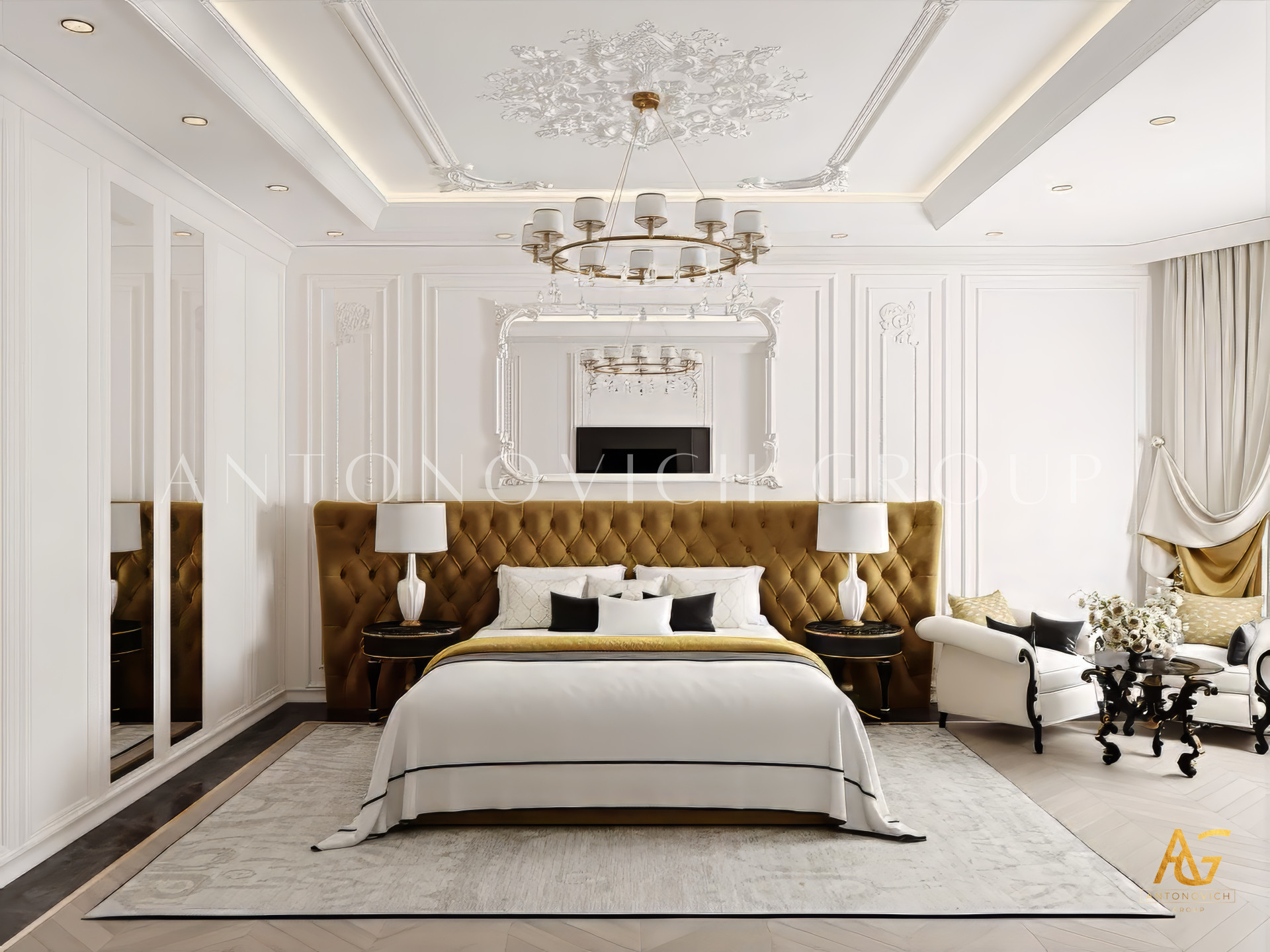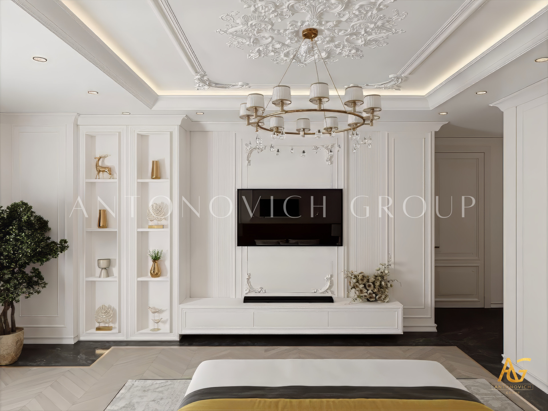 A wonderful interior design by the one and only Luxury Antonovich Design, with a beautiful soft cream color coupled with green accents. One of the amazing interior designs created by a world-renowned company is this magnificent creation. With its brilliant mood, the cool color offers a really peaceful ambiance. In the bedroom area, the designs are warm and cozy. Colors that are both peaceful and lovely are used in the luxury bedroom interior design. Its the perfect blend of elegance and classiness.