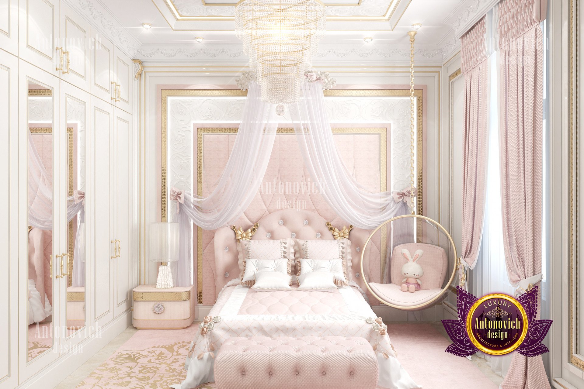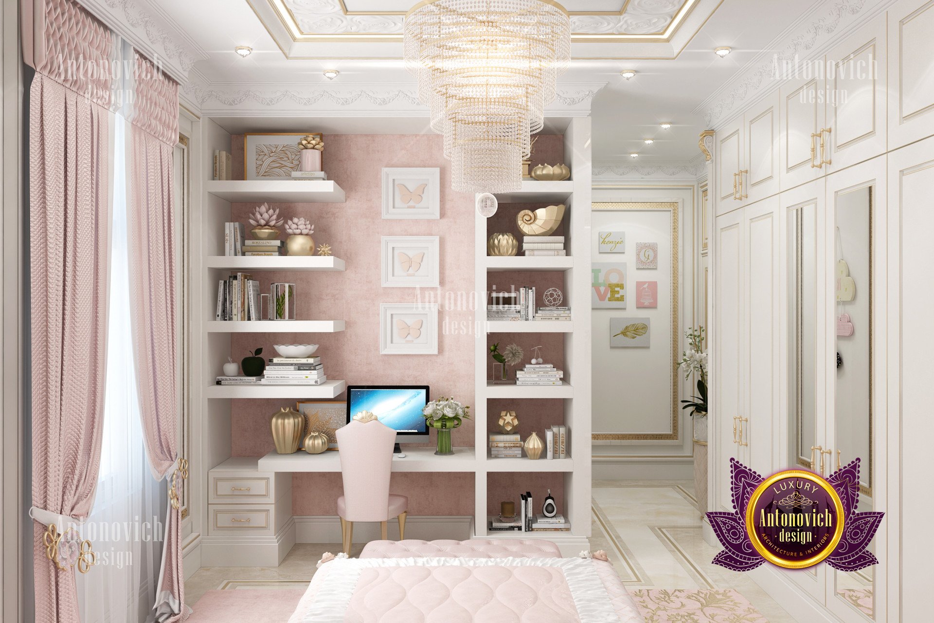 In this luxury pink bedroom interior design that Luxury Antonovich Design has created, they made sure that the beautiful color of pink is utilized very well in order to come up with a relaxing ambiance to the luxury pink bedroom interior design. The room also has amazing racks and shelves because it creates a nice and organized space for your luxury pink bedroom interior design. The beds and furniture designs that were used are also highly rated because of its high-quality materials and finish, making this luxury pink bedroom interior design a truly beautiful one.