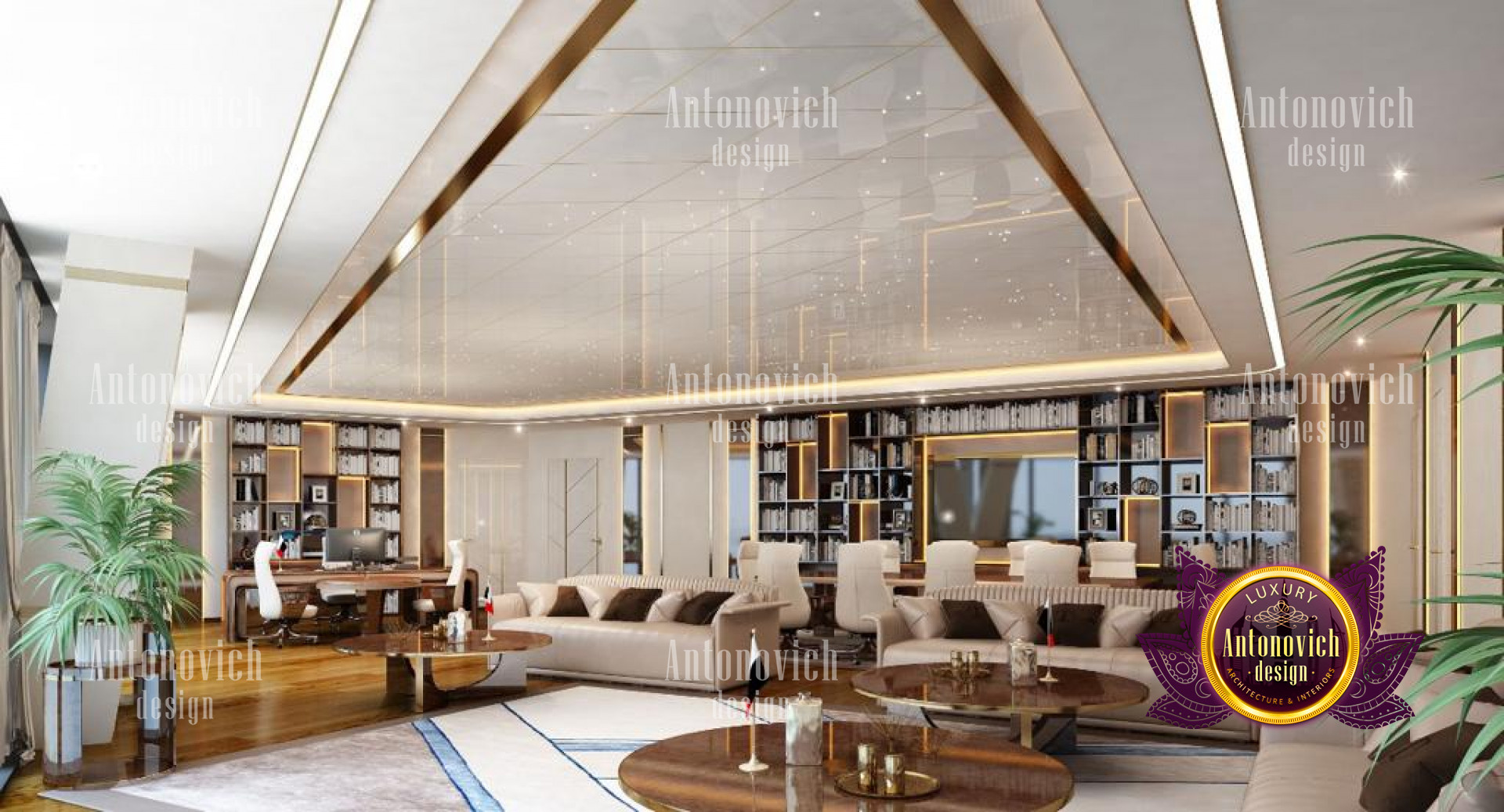 In the heart of Dubai, a one-of-a-kind luxury office. The interior decor of this lovely luxury property is minimalist, with various tables covered by large sofas. The stunning lighting in the luxury office interior design adds to the ambiance of extravagance and elegance. The lighting above it is just stunning since it brightens the entire room. The square accents on the wall décor of this gorgeous luxury office interior design are a nice touch to the brown and cream room. The dark brown accents give the room more depth. With their intriguing style, the lamps are also a standout. The cool and fascinating curtains are another great aspect of this luxury home interior design. The two-tone brown drapes are elegant and contribute to the rooms grandeur. The design on the walls is also breathtaking. They are incredibly trendy and go well with the rest of the luxury offices interior design. One of the most beautiful offices you will ever see in the city is in Dubai. A stunning contemporary luxury office design with high-end furnishings. The wonderful sofa has a minimalist touch, while the cream and brown throw fabric gives the luxury office interior design a natural feel. The brown tone of the office table is a striking highlight. The interior design of a stunning brown and gold luxury office with cool and fascinating patterns.