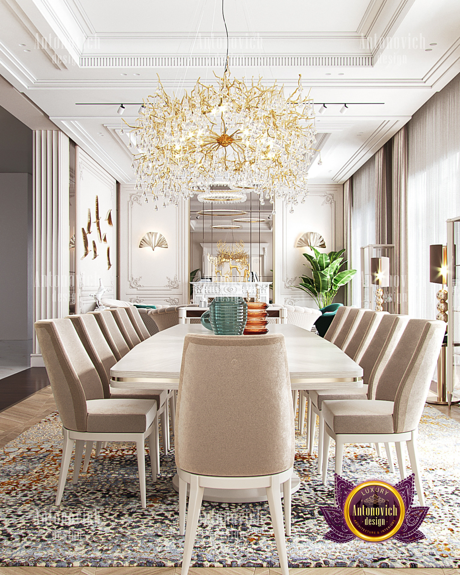 There are a few aspects in this luxury Dubai villa interior design that make it stand out as a model for anybody looking to develop an attractive interior design utilizing natural colors. One of the most notable features youll notice is the clever usage of furniture around the luxury Dubai villa interior design. The flower vase in the room was placed there to represent the harmony of nature and light, and it accidentally created a modern aesthetic impression. The sophisticated and elegant contemporary chandelier of the luxury Dubai villa interior design exudes refinement and elegance. The dining space is brought to life by the contrast of the chandelier against the white ceiling and the elegant and attractive brown-colored seats. Elegance is ageless in its essence, however, what constitutes "elegant" varies from century to era. Incorporating traditional aspects into your area, on the other hand, is elegant. Classic does not suggest stuffiness or formality; rather, it denotes anything that has survived the test of time in terms of design and always comes out on top.