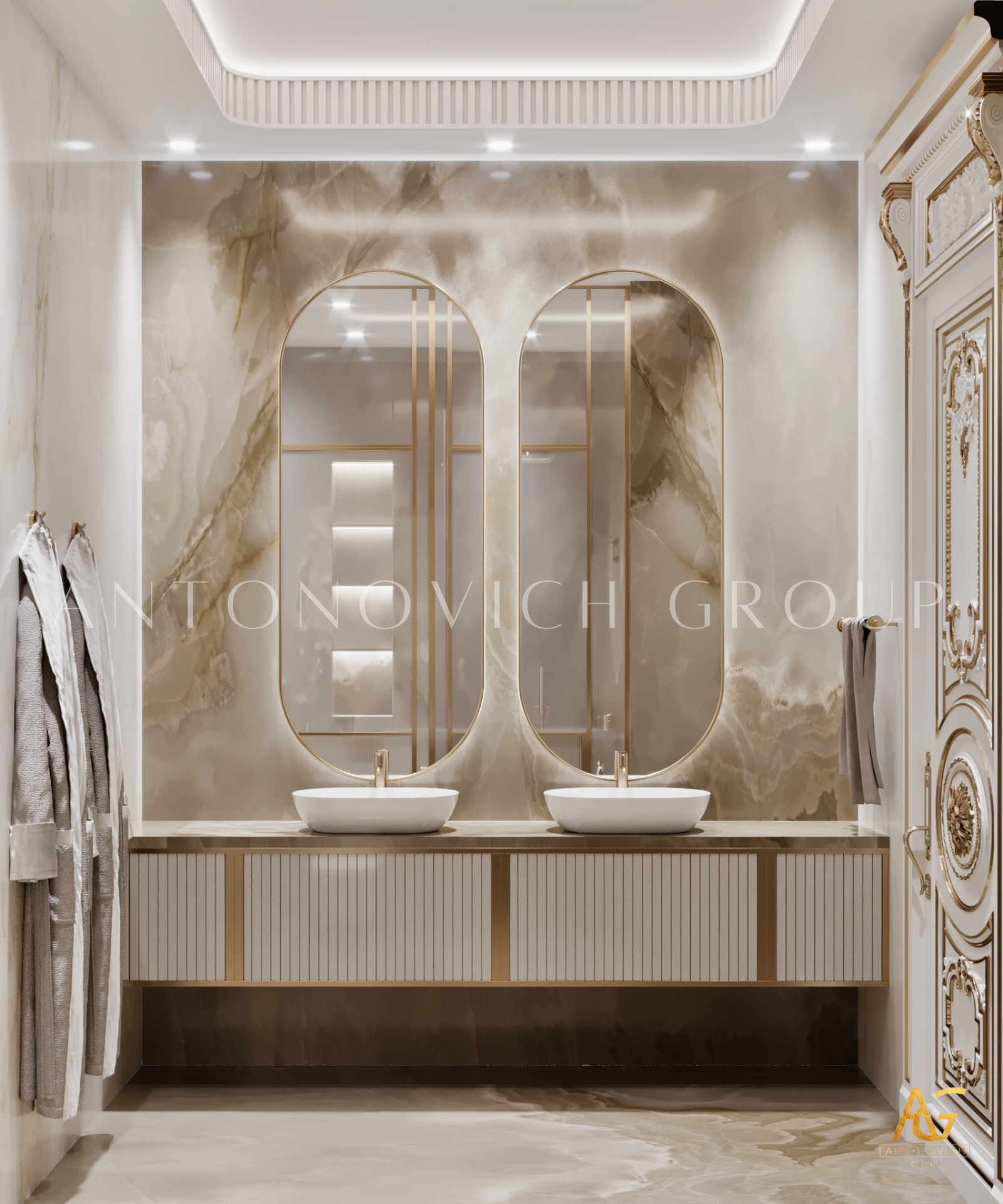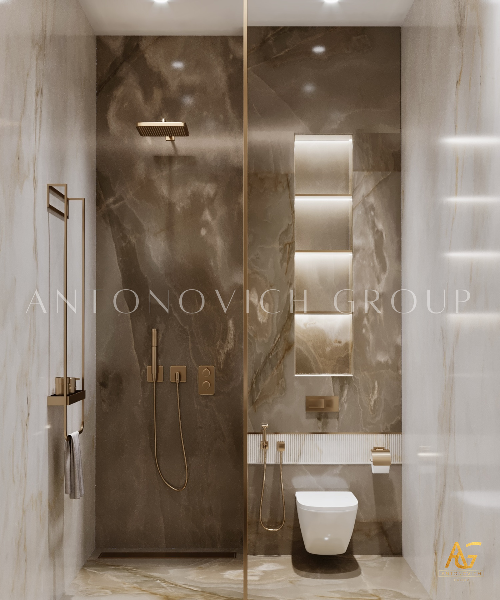 Each bathroom interior designed by Antonovich Group is a masterpiece of creativity and precision. The firm’s expert designers begin by developing a bespoke concept tailored to the client’s lifestyle, taste, and architectural environment. Using only the finest materials—such as Italian marble, natural stone, onyx, and gold accents—Antonovich Group achieves an atmosphere of refined luxury and enduring beauty. Every element, from the flooring and walls to lighting and fixtures, is thoughtfully planned to ensure balance, harmony, and comfort.