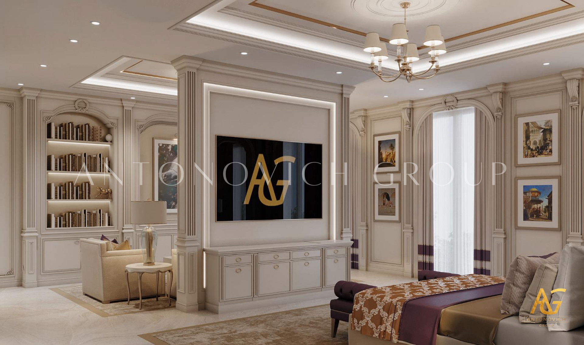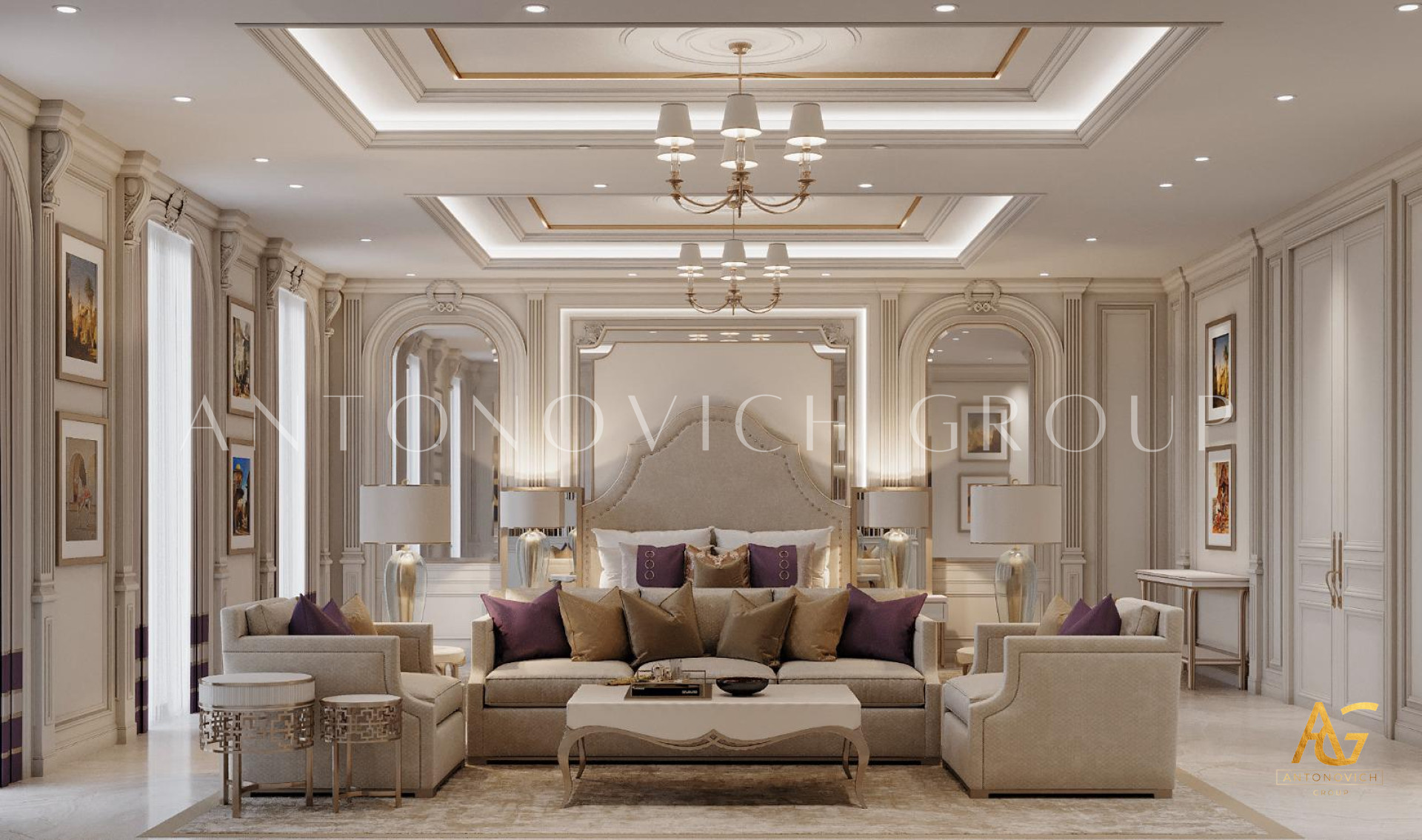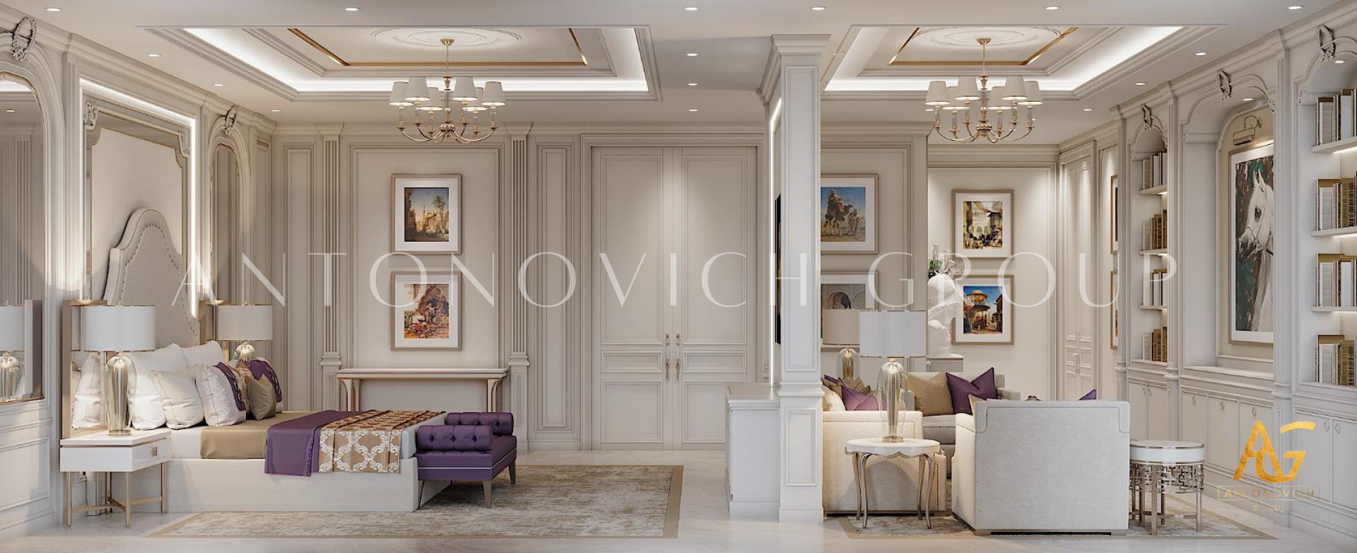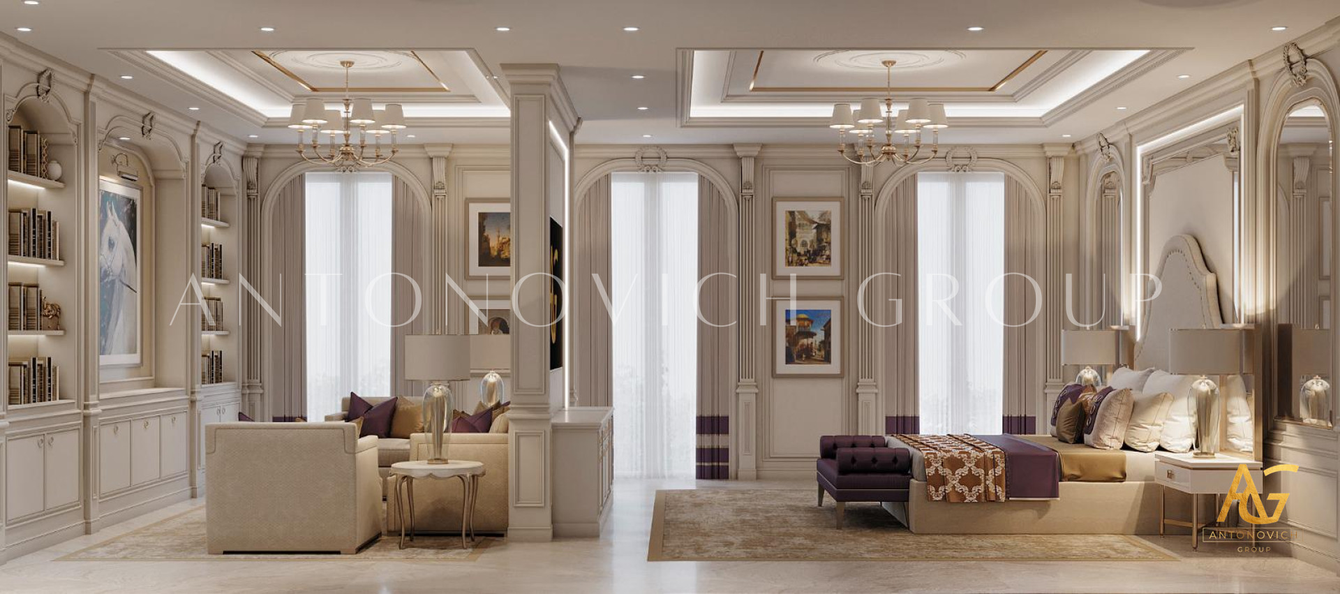 White is such. a classy color. It creates a stunning vibe especially if you want a cleanroom. Though some choose not to have white because it requires maintenance, with Luxury Antonovich Design, they made sure that the white color of the walls is designed with glamorous patterns that make this luxury bedroom interior design a perfect room for you and your partner.