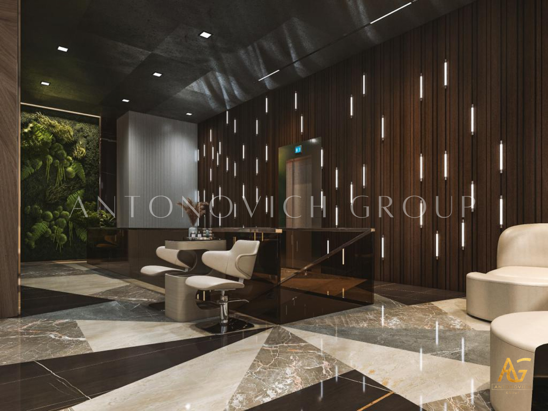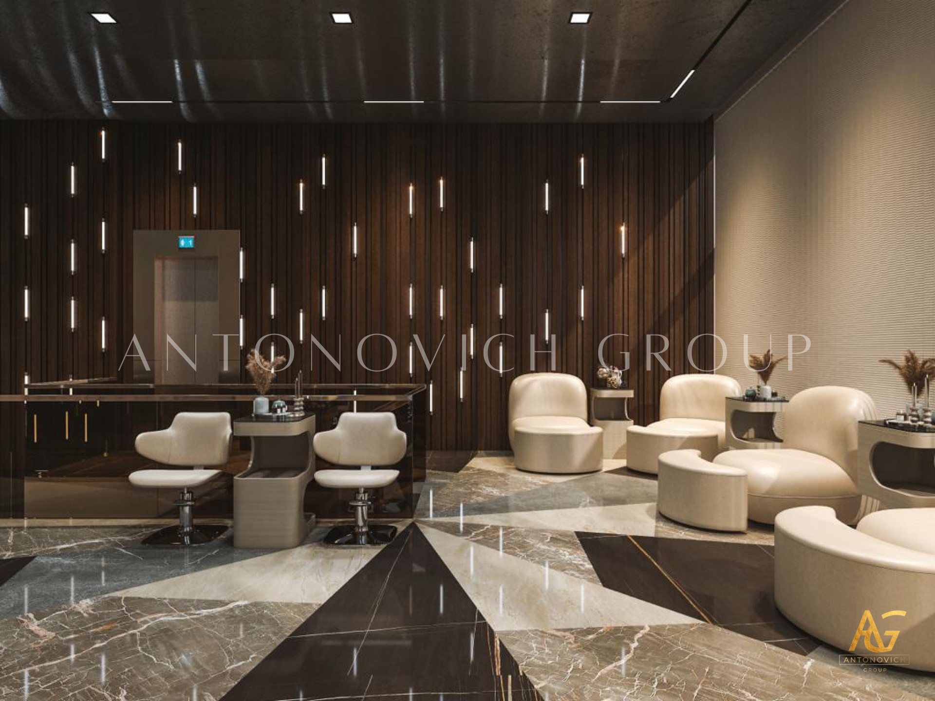 This office lobby interior designs delicately made by Antonovich Group with the finest selections of each material and furniture which has been perfectly conducted thru a systematic fit-out interiors procedure. Antonovich Group is the only interior design company Dubai in UAE that always guarantees to provide exclusive design services for every public area such as the office lobby as it offers complete executions from A to Z.