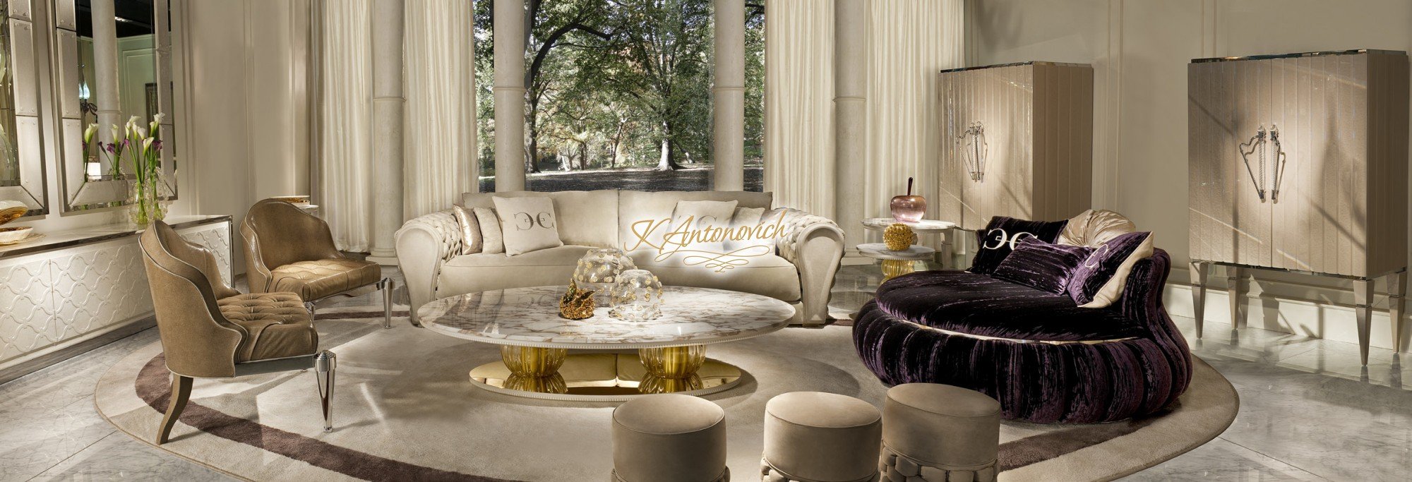 We propose to buy a luxurious and fashionable furniture for the living room from the best world factories. Online store from Luxury Antonovich Design Company is as proof of this. Our company offers a range of collections of bedrooms, living rooms, kitchens and hallways, taking into account fashion trends and price segment.