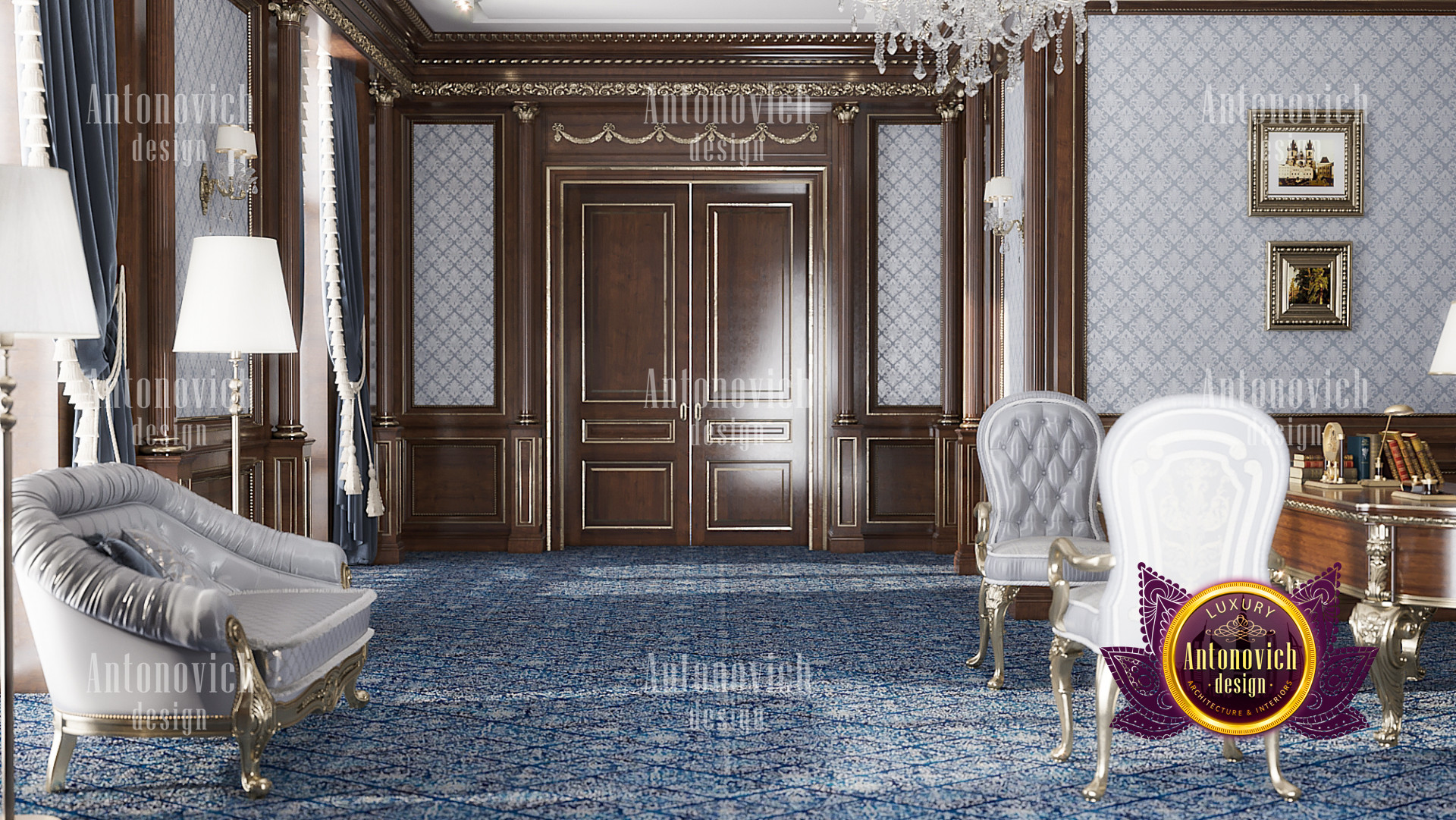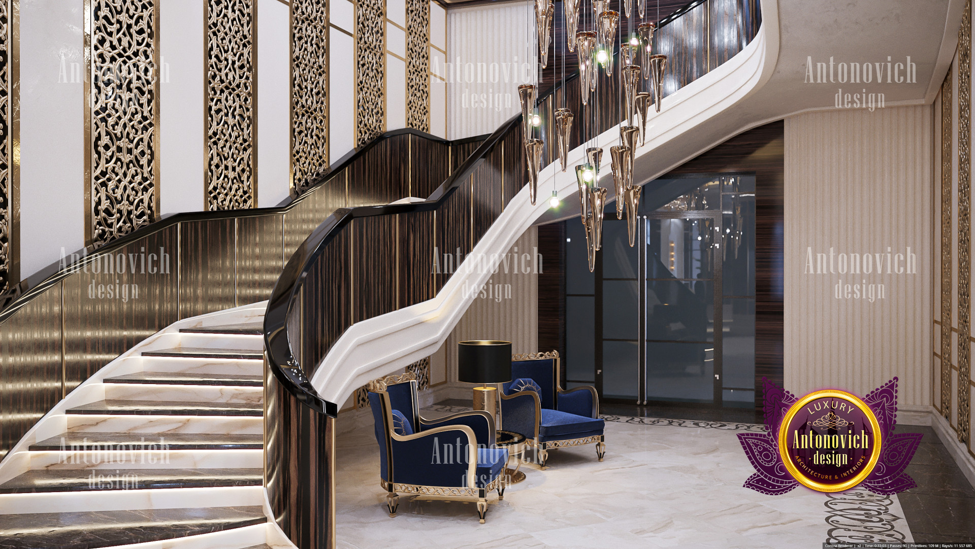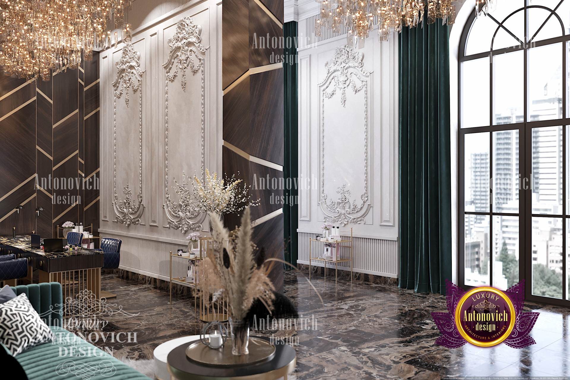 The features and arrangement of Luxury Antonovich Designs Hotel lobby design Dubai are modern luxuries. The big space is decorated in a luxurious manner. The patterns are perfect for a modern high-end interior design. It also has high-end functions that you may utilize on a regular basis. The Hotel interior design in Dubais arrangement is also rather big and appealing, as one would expect from a high-end modern interior design.