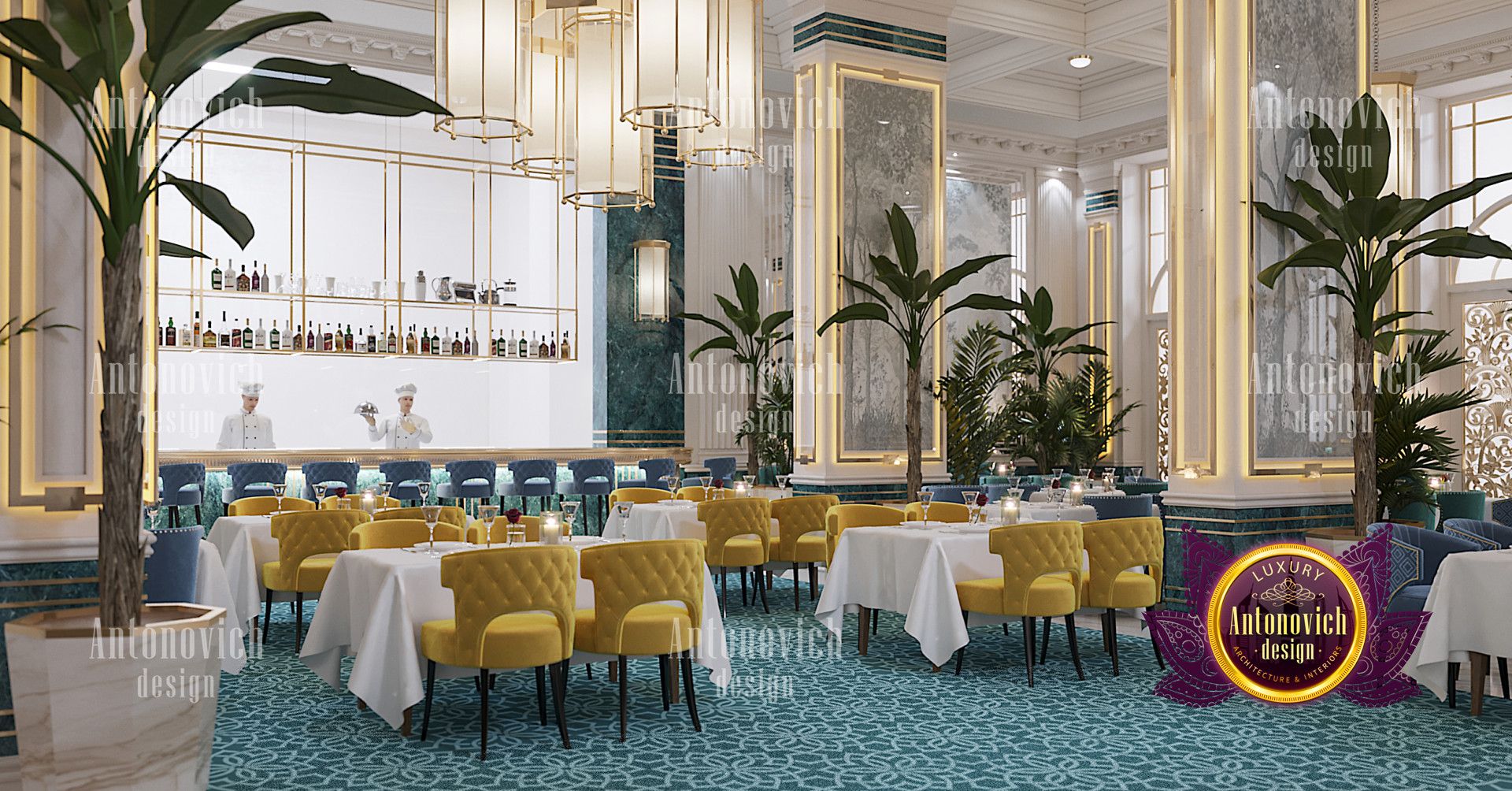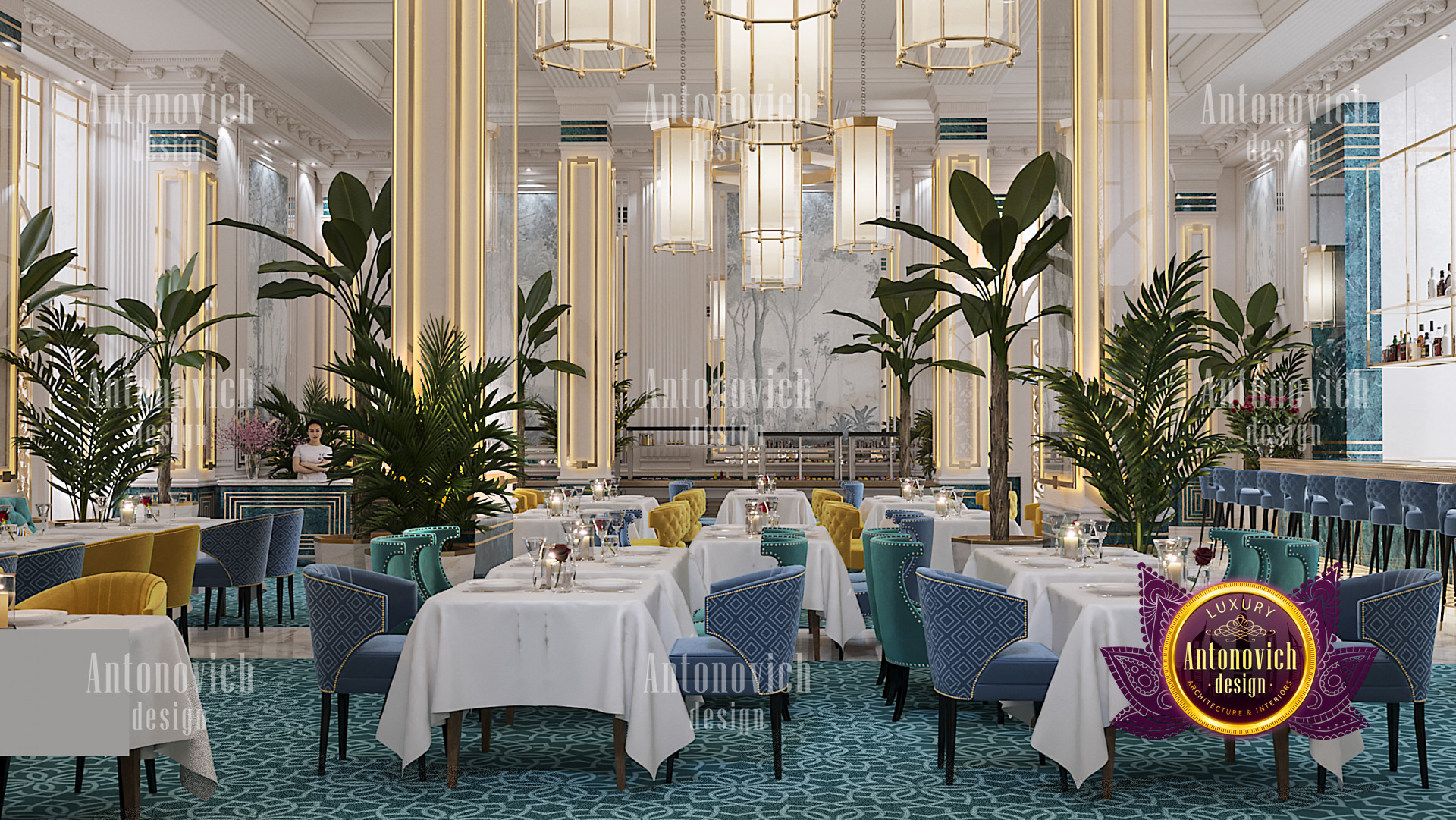 There are various gorgeous pieces of furniture in this Commercial hotel design Dubai. The style is ideal for individuals who desire a luxurious atmosphere in their Hotel interior design in Dubai. Browns and greens in gorgeous tones are both elegant and modern. The Hotel Design With The Best Luxury Hotel Interior Design in Dubai is suitable for the richest because of its outstanding layout and interior style. The space is lovely, with strong green and brown tones that are perfect for a Dubai luxury interior design. The Hotel restaurant interior design Dubai is extremely well-made, with its vast layout.