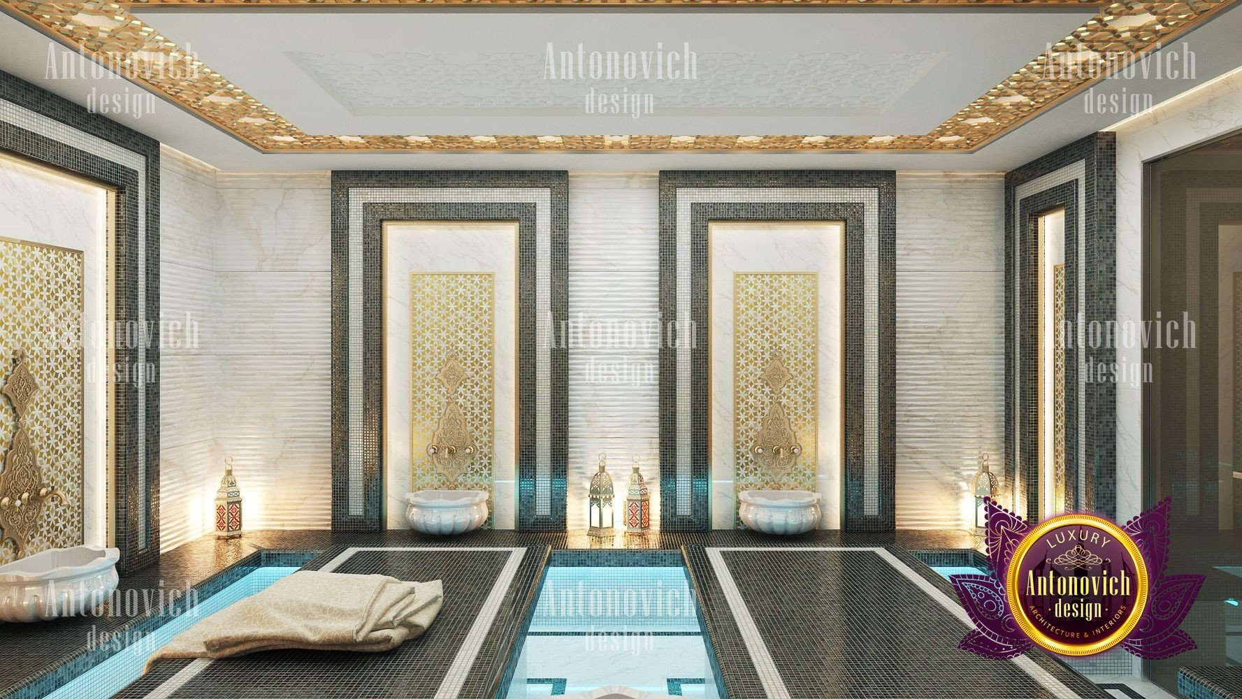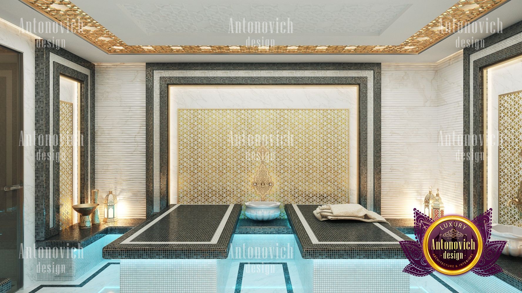 Hamam interior fit-out plays an enormous role during the construction and formation of the atmosphere of the place. Design of Turkish hamam from Luxury Antonovich Design is not only elegant, expressive and luxurious, but also consists of high-quality materials that have sustainable properties. Finishing hamam with marble and other noble material is a way to add a more presentable look to it. The reasons for this are the unique properties of natural stone.