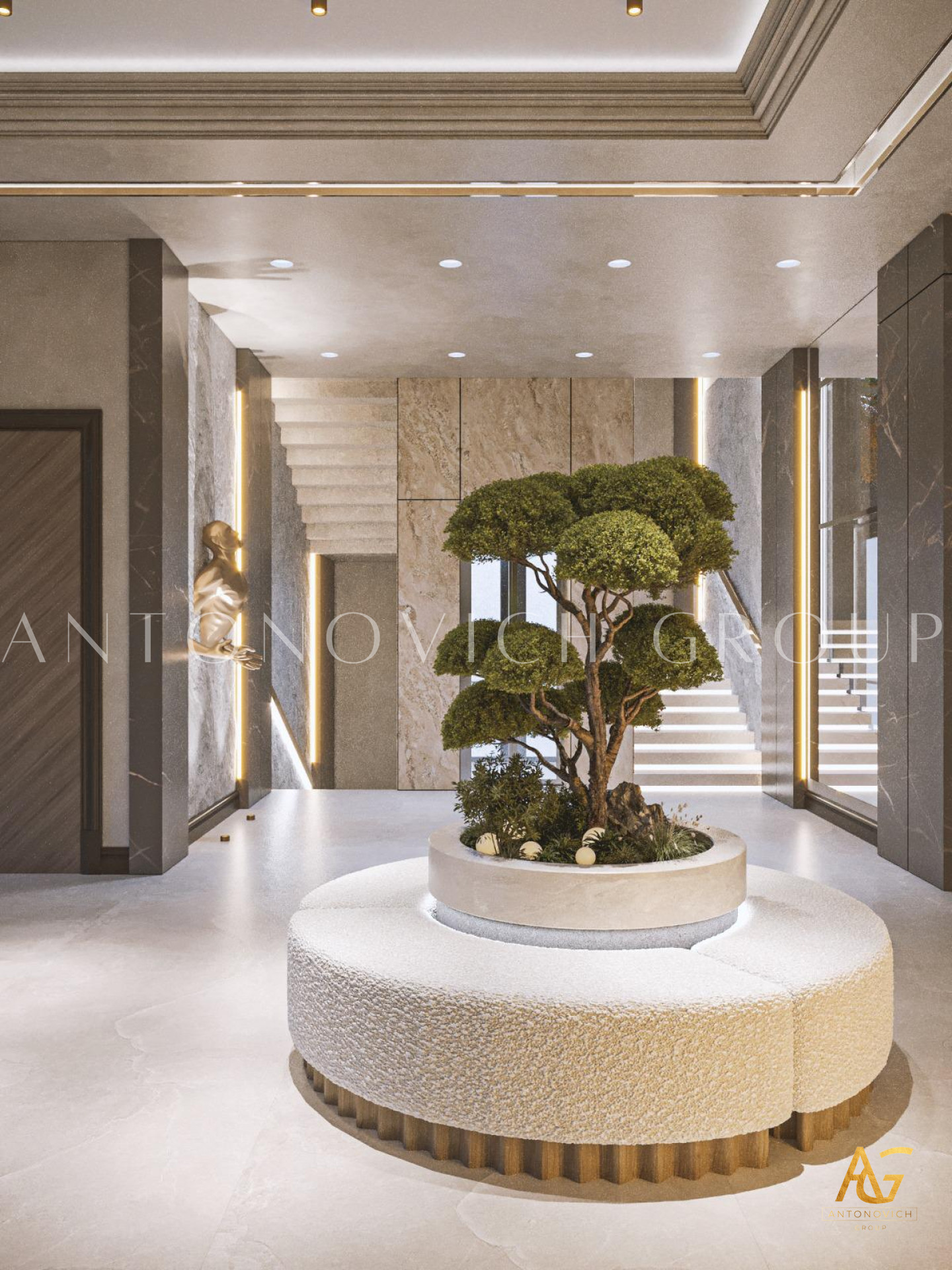 For fit-out villas projects, Antonovich Group pays special attention to practical aspects while maintaining luxury aesthetics. Hidden storage solutions, climate control systems, and smart home integration are seamlessly incorporated into the design. The result is an entrance foyer that's not only visually stunning but also highly functional.