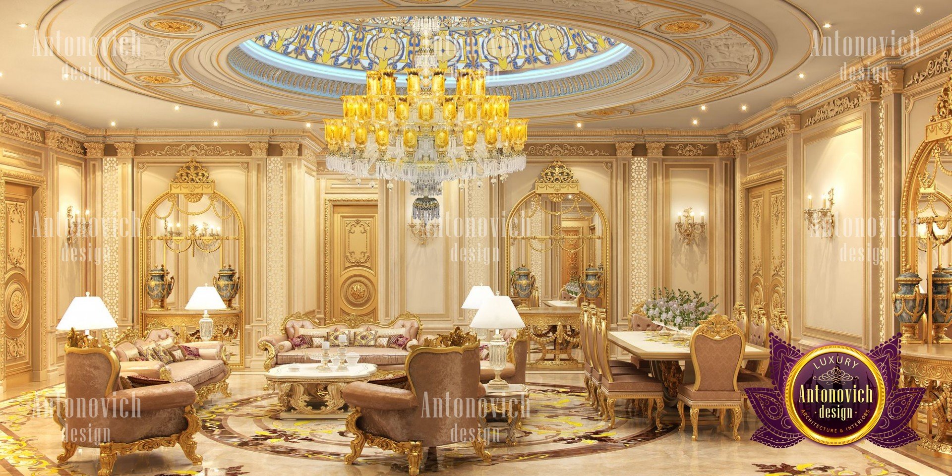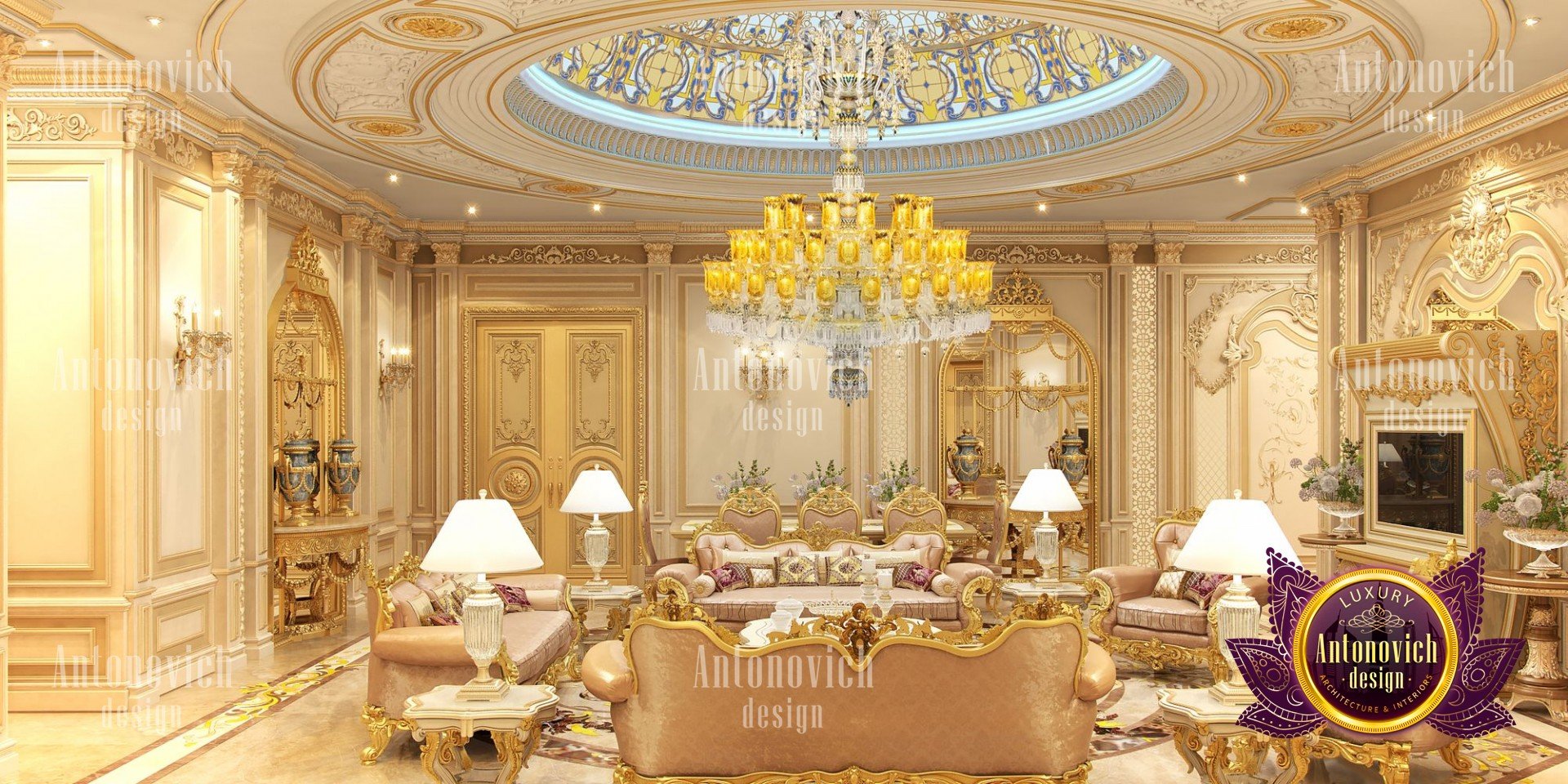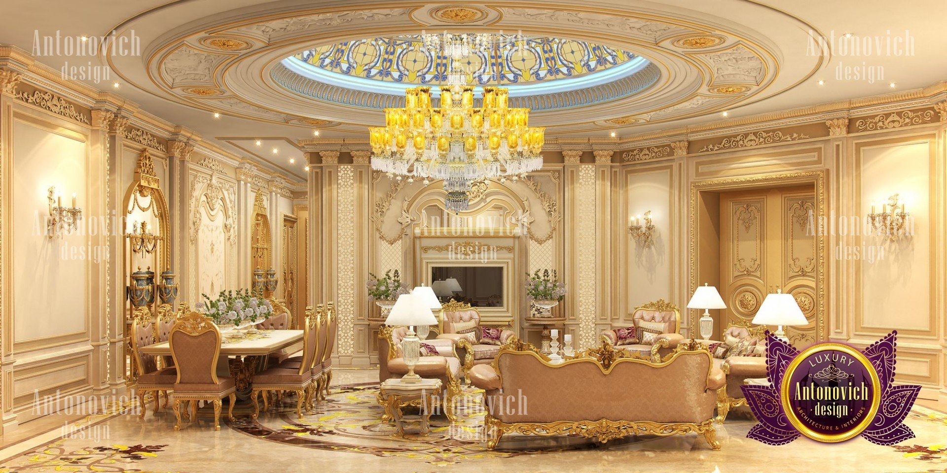 It was a huge benefit for the Antonovich Group to have its own manufacturing, factory, and production team that is fully capable of performing premium-class furniture design and providing all necessary materials for all interior design advancements. Antonovich Group is also well-known for being the greatest provider of the most exquisite and prestigious furniture design and décor, as well as bespoke furniture design, which is typically required in making such developments for royal-style living room interiors.