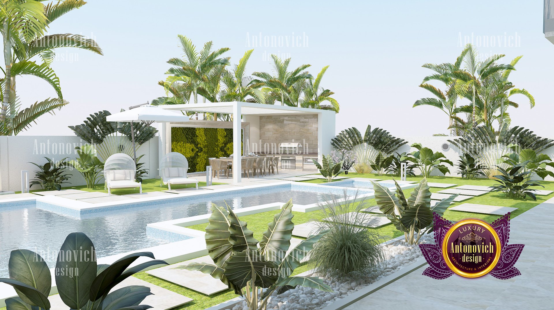 The taller shrubs should be in the heart of an island border, with the shorter plants surrounding them. When choosing perennials for this luxury Dubai garden landscaping, look for a mix of magnificent blooms and attractive foliage. We install plants in the border of this luxury Dubai garden landscaping while they are still in their pots to check how they look. Keep in mind that they will grow and fill out. Check to see whether theres adequate space between them. Clump plants of the same type and color together in patches of 3-5 plants. Plant some colorful annuals in any large empty spaces that need to be filled. Flower gardens are, without a doubt, the most enjoyable to plan, cultivate, and play with year after year. Do you like softer lines and a more natural vibe in your room? Do you desire a landscape with a limited palette of colors? These kinds of questions might help you choose a consistent theme for your garden. To get the most out of this luxury modern landscape design, we examine the yard, rooms, and within the house. Your landscape, like your home, should have well-defined and well-planned rooms; efficiently utilizing your resources aids in the creation of separate "rooms" in your landscape.