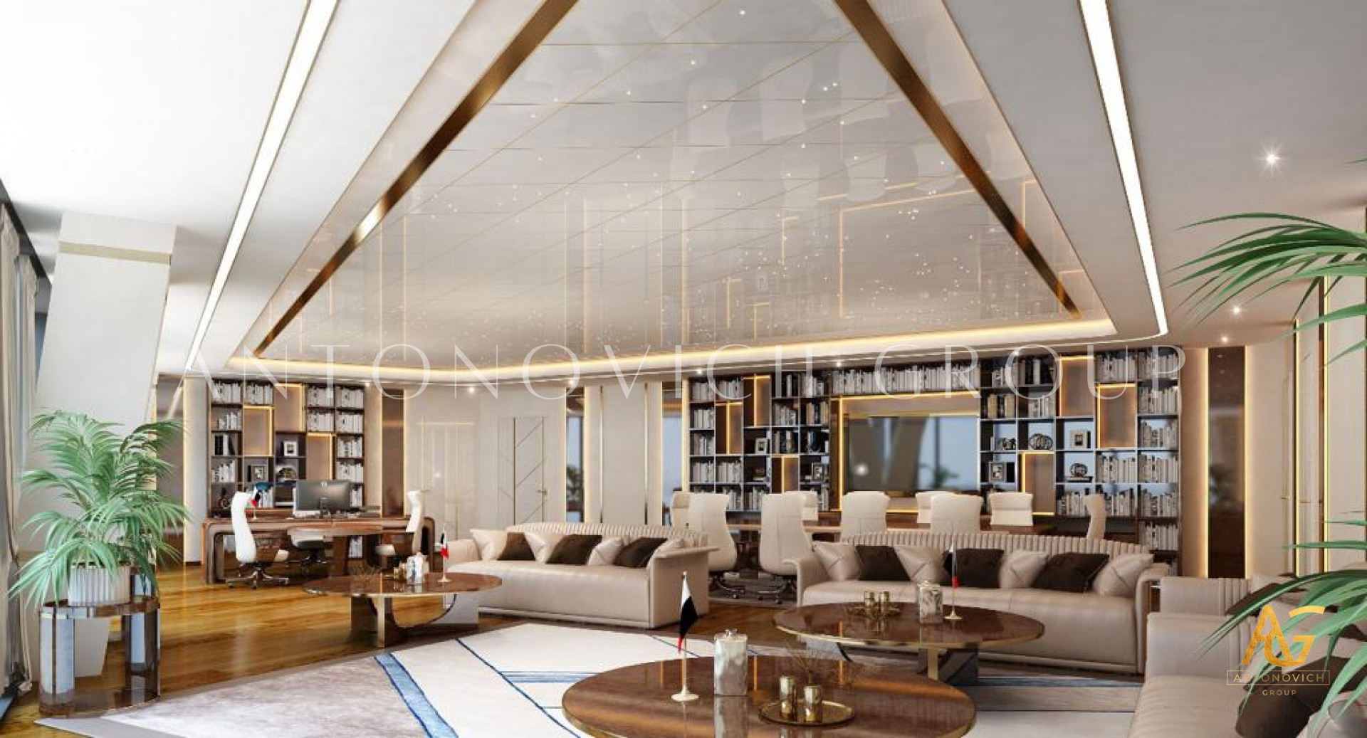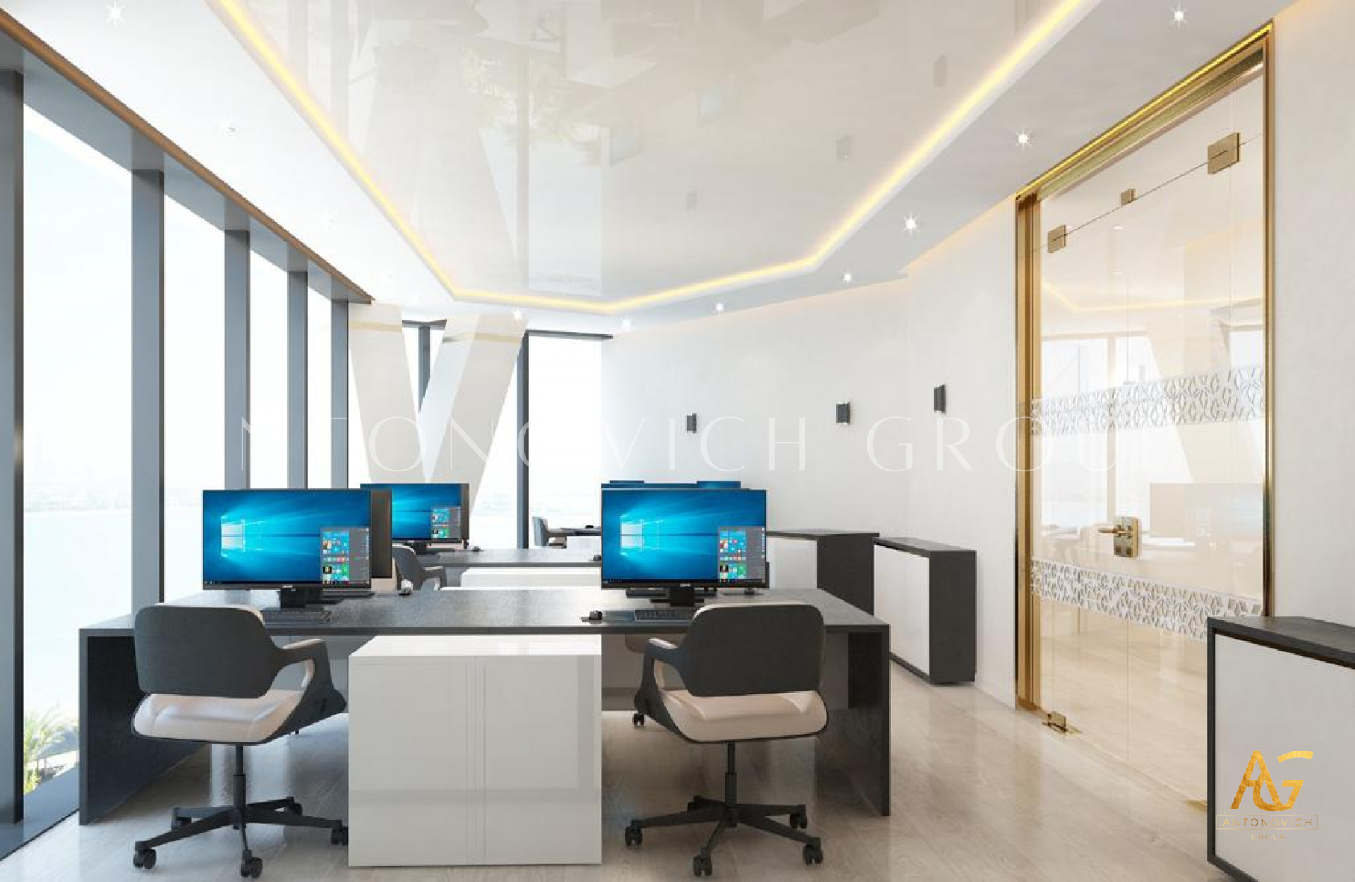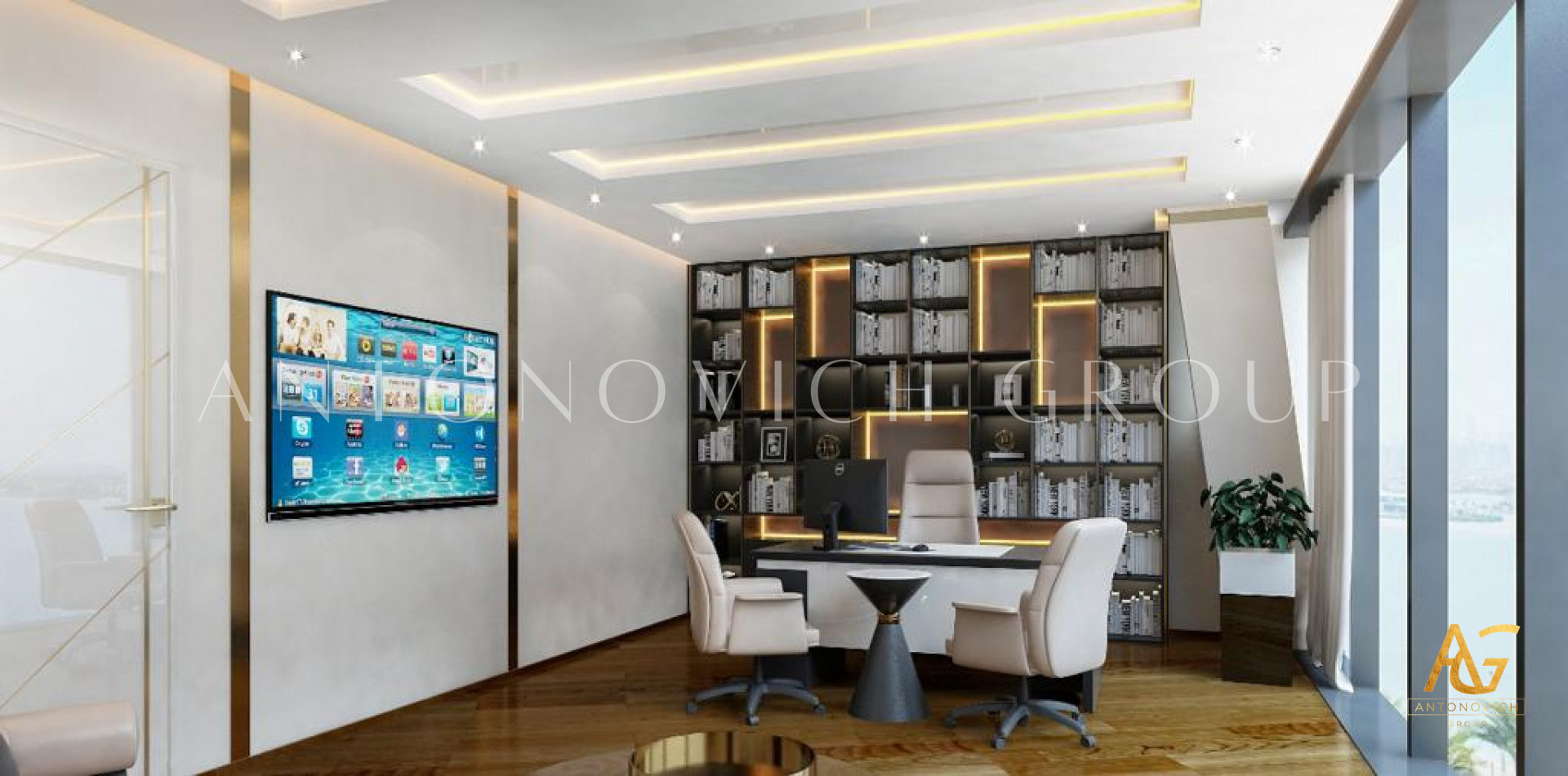 The seats complement the lovely Commercial fit-out decor. The side plants are an excellent addition to the modern Office fit-out renovation luxury design. A magnificent accent completes the cool and fascinating modern Office fit-out renovation luxury interior design. The amazing patterns in this lovely modern Office fit-out renovation luxury interior design were created with the intention of creating a stunning and beautiful luxury. This modern Office fit-out renovation luxury interior design has an attractive ambiance that is ideal for you to live in. The gold accents also give the area a lovely feel. There are several luxury accents and furniture in the luxury interior design. The materials chosen are fantastic, and the high quality of the details can be seen throughout the modern Office fit-out renovation luxury design. This space exudes sophistication and elegance. The magnificent Office fit-out renovation luxury interior design features gleaming gold elements throughout. The lovely gold hue is the ideal color for expressing luxury, which is why Luxury Antonovich Design chose it for this rich Office fit-out renovation luxury interior design.