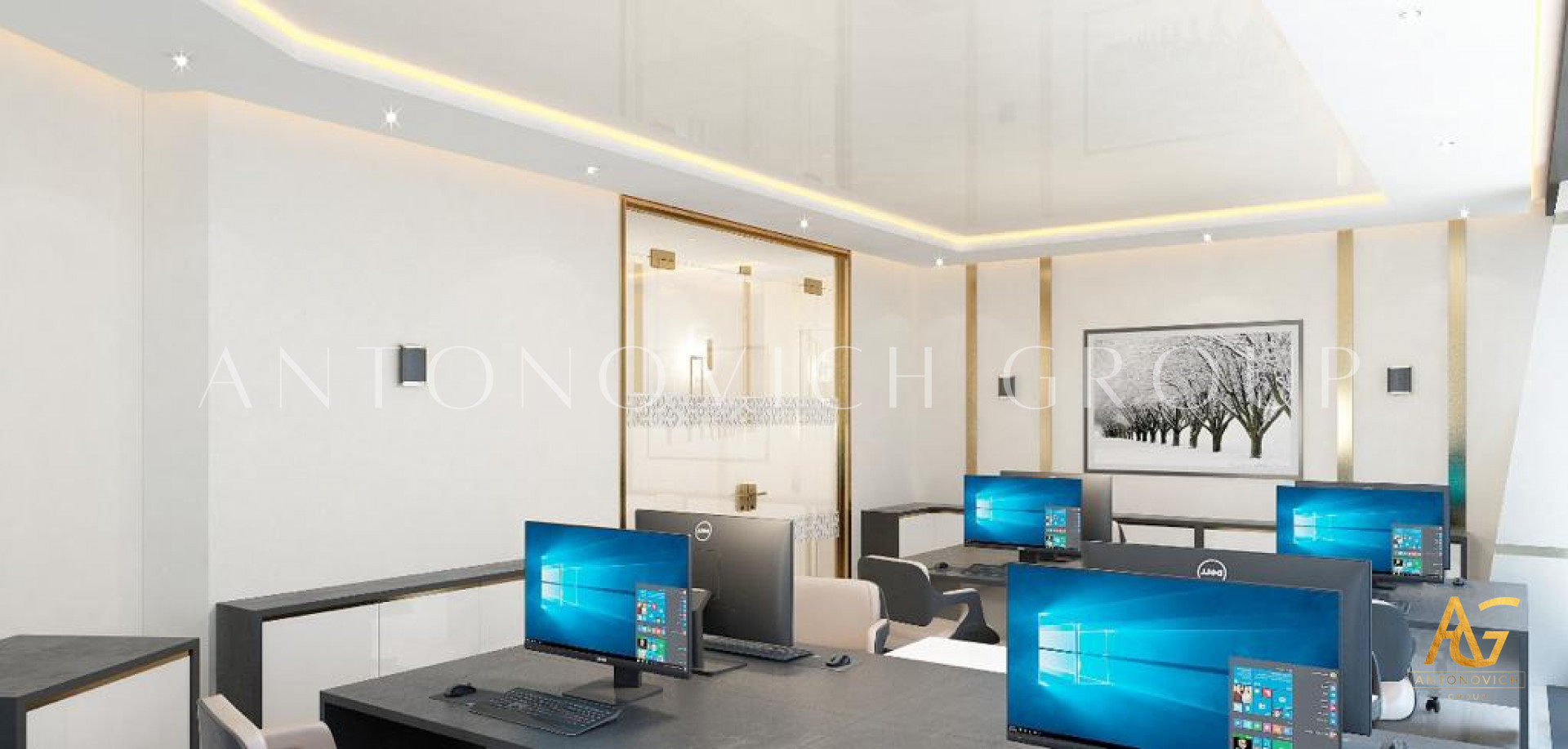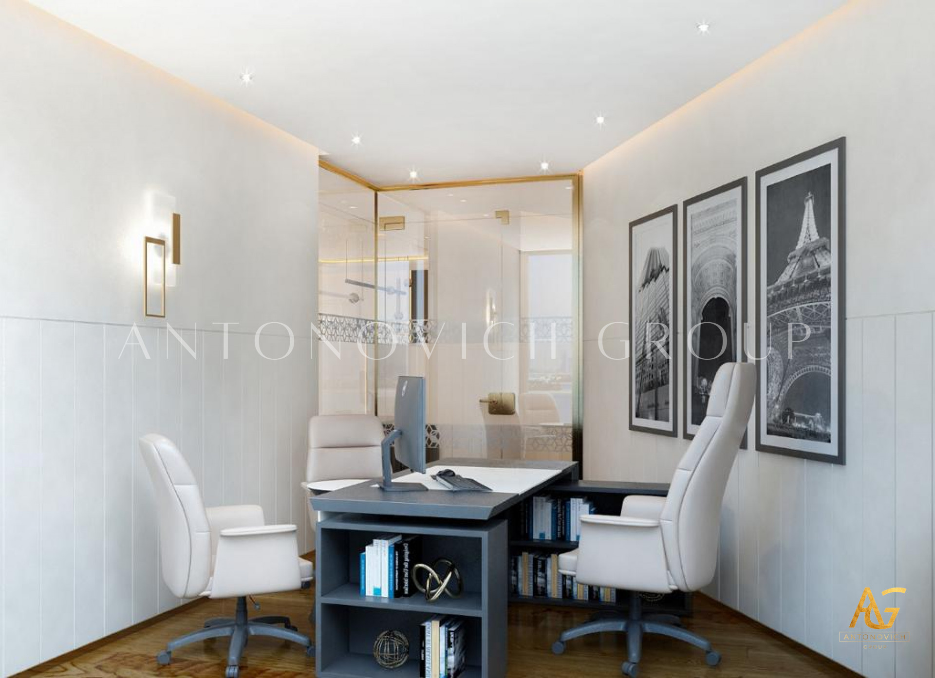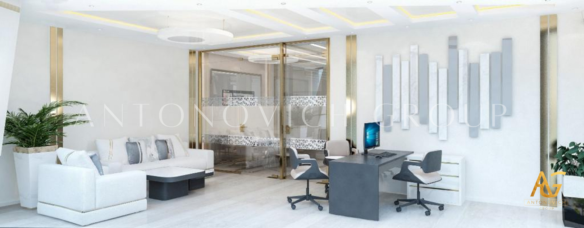 The seats complement the lovely Commercial fit-out decor. The side plants are an excellent addition to the modern Office fit-out renovation luxury design. A magnificent accent completes the cool and fascinating modern Office fit-out renovation luxury interior design. The amazing patterns in this lovely modern Office fit-out renovation luxury interior design were created with the intention of creating a stunning and beautiful luxury. This modern Office fit-out renovation luxury interior design has an attractive ambiance that is ideal for you to live in. The gold accents also give the area a lovely feel. There are several luxury accents and furniture in the luxury interior design. The materials chosen are fantastic, and the high quality of the details can be seen throughout the modern Office fit-out renovation luxury design. This space exudes sophistication and elegance. The magnificent Office fit-out renovation luxury interior design features gleaming gold elements throughout. The lovely gold hue is the ideal color for expressing luxury, which is why Luxury Antonovich Design chose it for this rich Office fit-out renovation luxury interior design.
