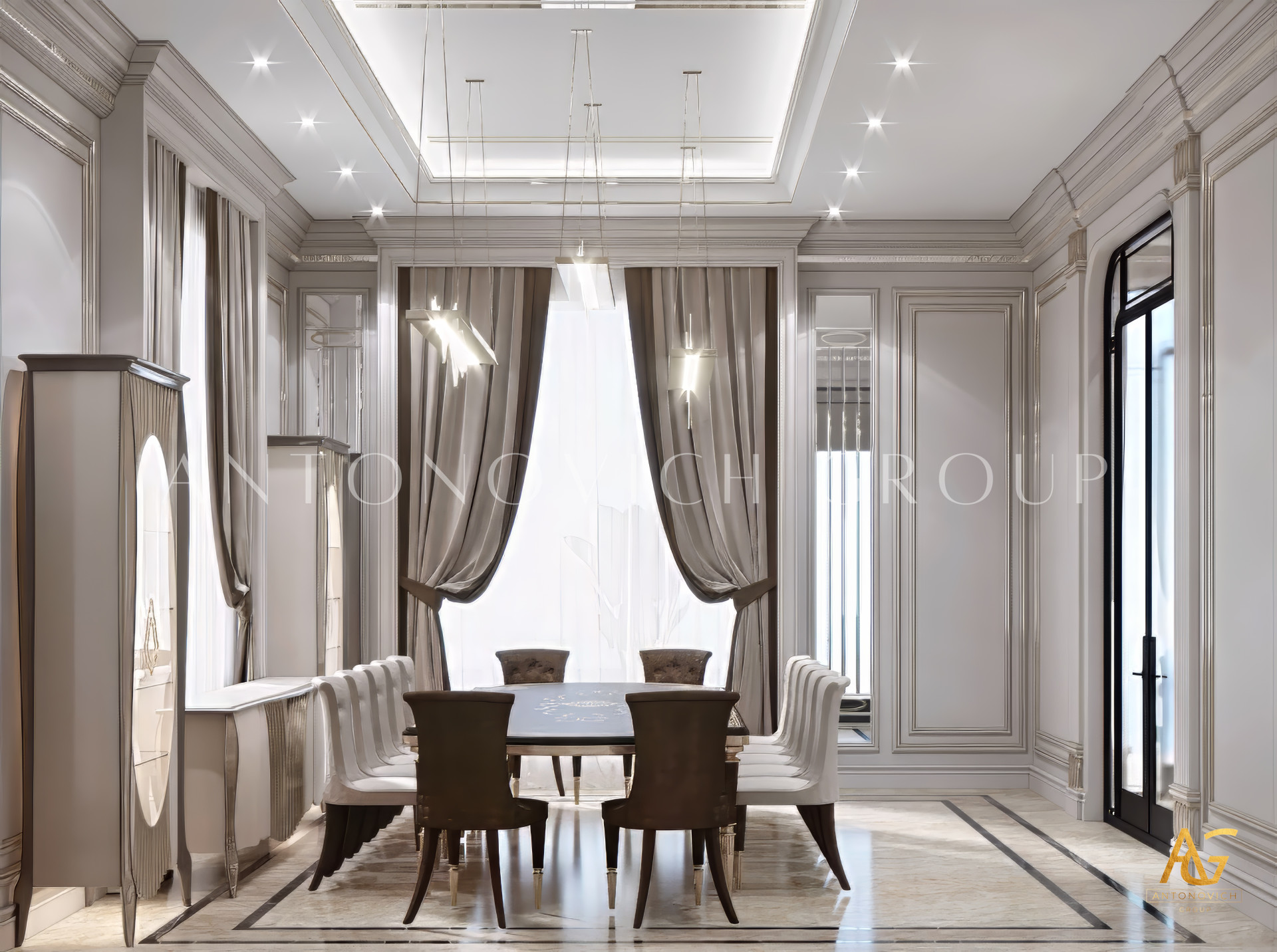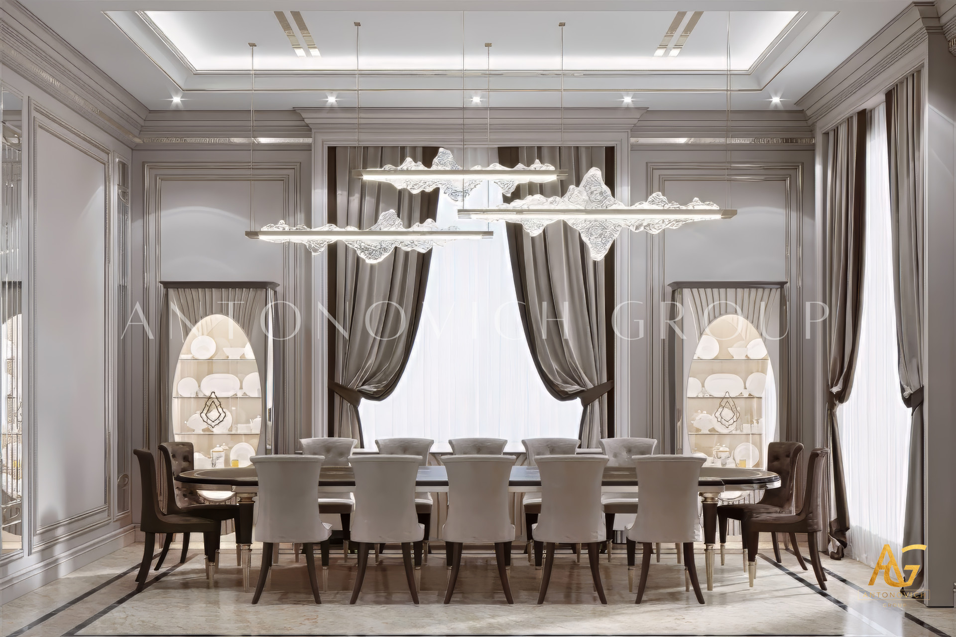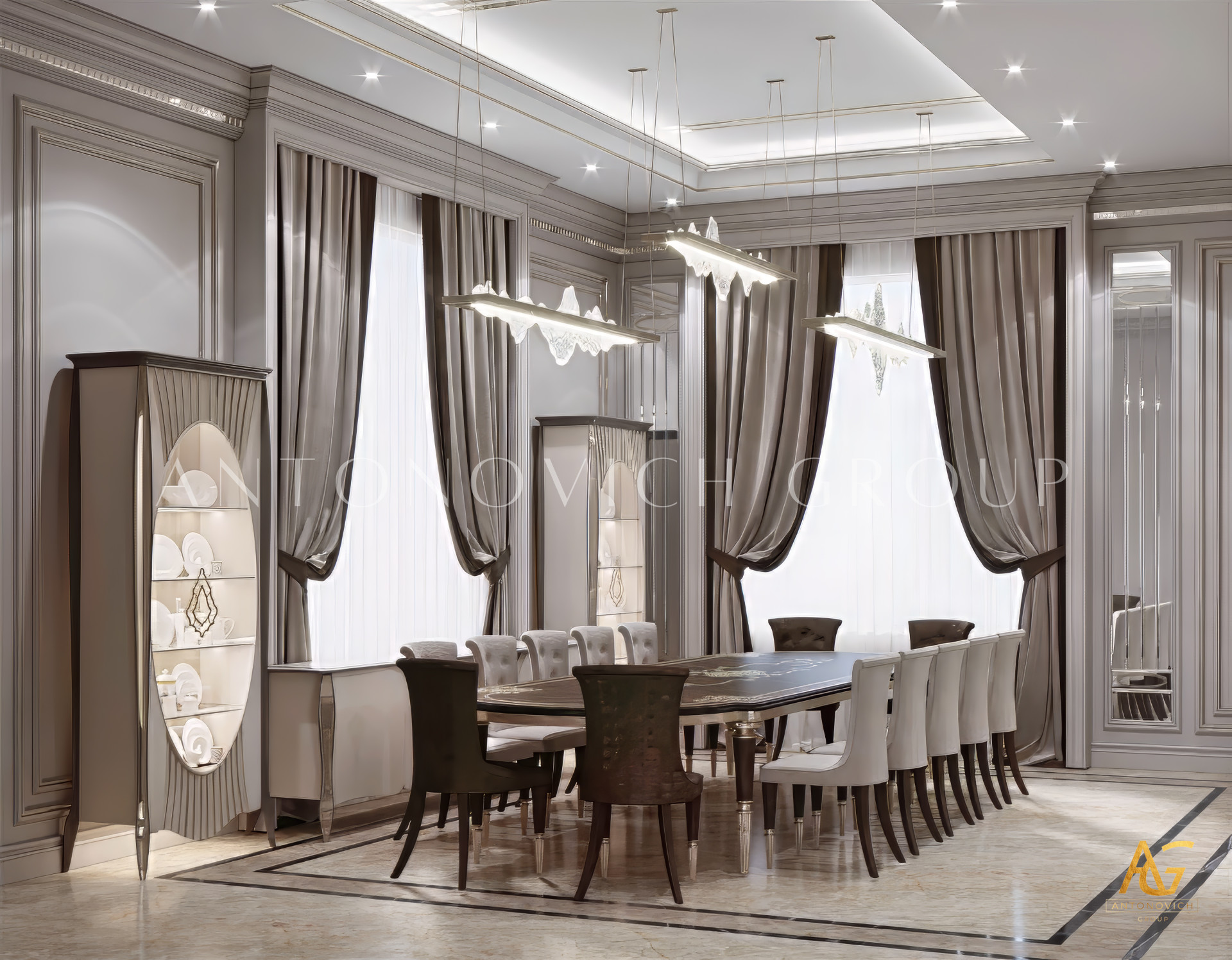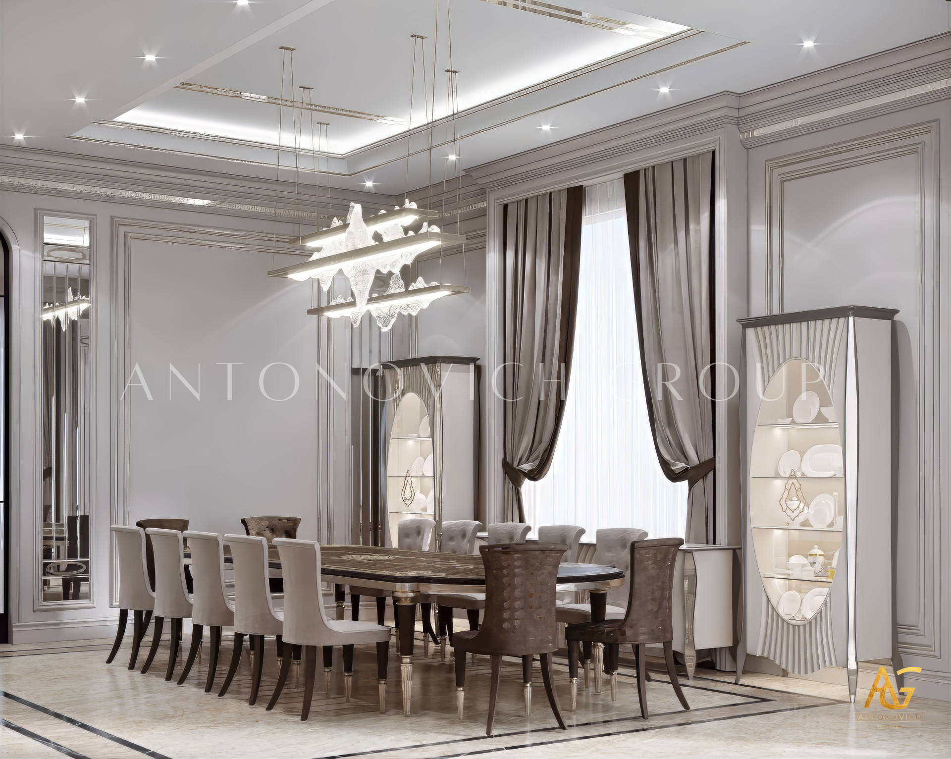 The dining room often serves as the focal point of the home, and Antonovich Group ensures that this space embodies the perfect balance between luxury and comfort. Whether it’s part of a modern villa or a classic mansion, every project begins with a deep understanding of spatial flow, natural light, and the homeowner’s lifestyle.