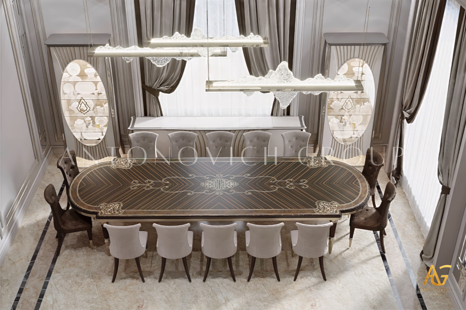 Whether the style leans toward modern minimalism, classic luxury, or contemporary elegance, Antonovich Group ensures that every detail aligns with the client’s expectations. Customization extends from the choice of materials and finishes to the selection of decorative elements, ensuring that each dining room is a unique reflection of its owner’s personality.