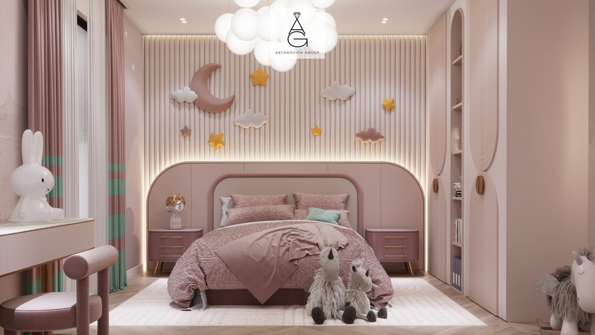 One of Antonovich Group's distinctive features is their ability to breathe life into whimsical themes. Whether it's a magical forest, an underwater adventure, or a space odyssey, each theme is brought to life with meticulous attention to detail. Personalization is key, ensuring that each kid's bedroom is a unique sanctuary reflecting the child's interests and dreams. Their portfolio includes Project 13, which showcases thematic detailing.