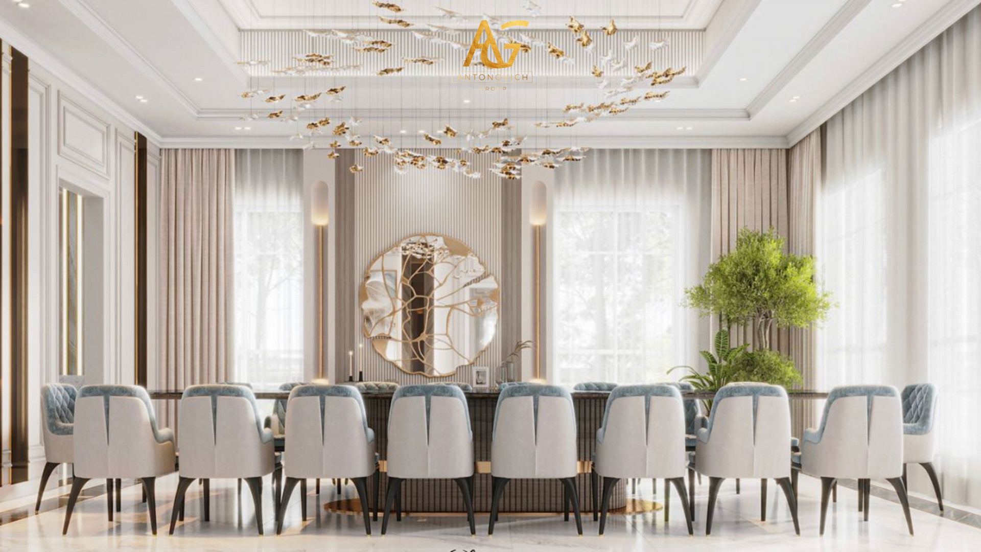 A hallmark of Antonovich Group's designs is the meticulous attention to detail. Every element, from the choice of materials to the selection of colors, is thoughtfully curated to create spaces that exude elegance. Their ability to balance form and function is exemplified in every room they design. For refined dining layouts and period-inspired table settings, see classical dining inspiration.