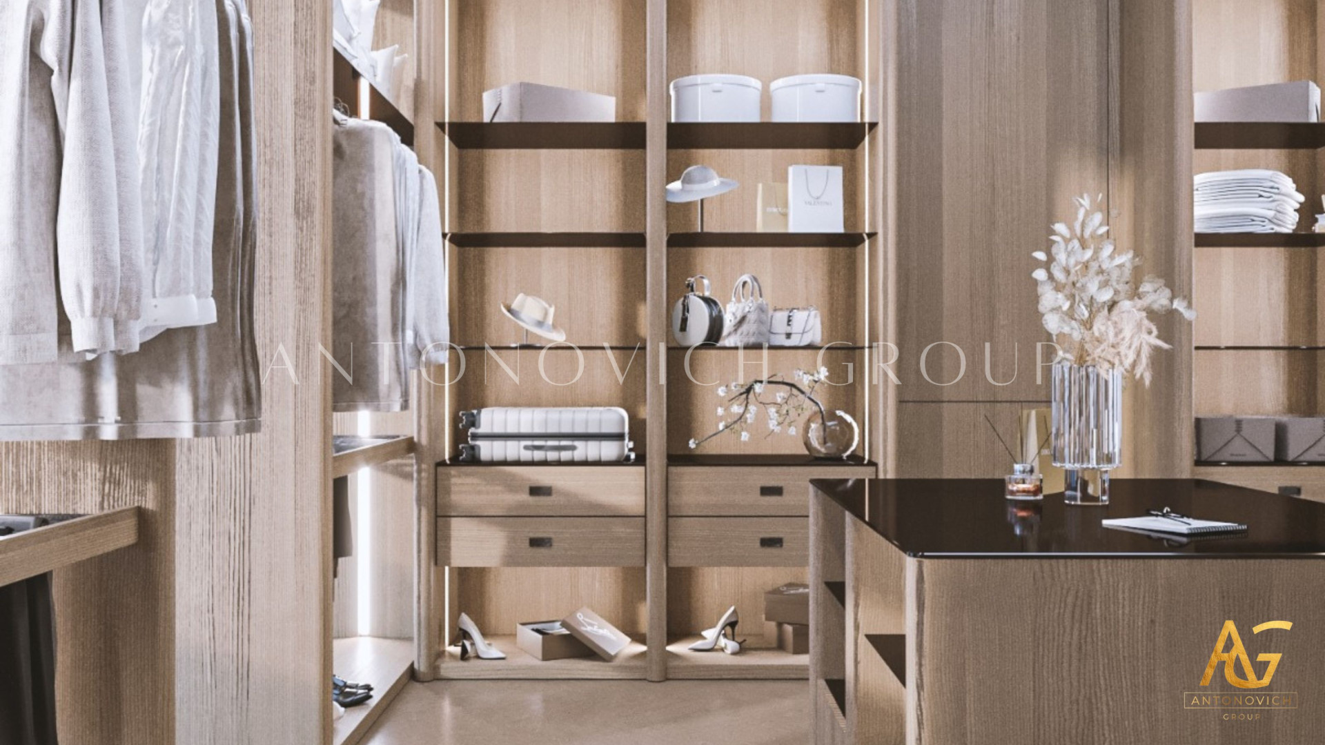 1.\tCustom Wardrobes: Tailored to maximize space and style, Antonovich Group’s wardrobes follow luxury wardrobe design principles and feature high-quality finishes and seamless designs. From mirrored panels to leather accents, every detail is crafted to exude sophistication.