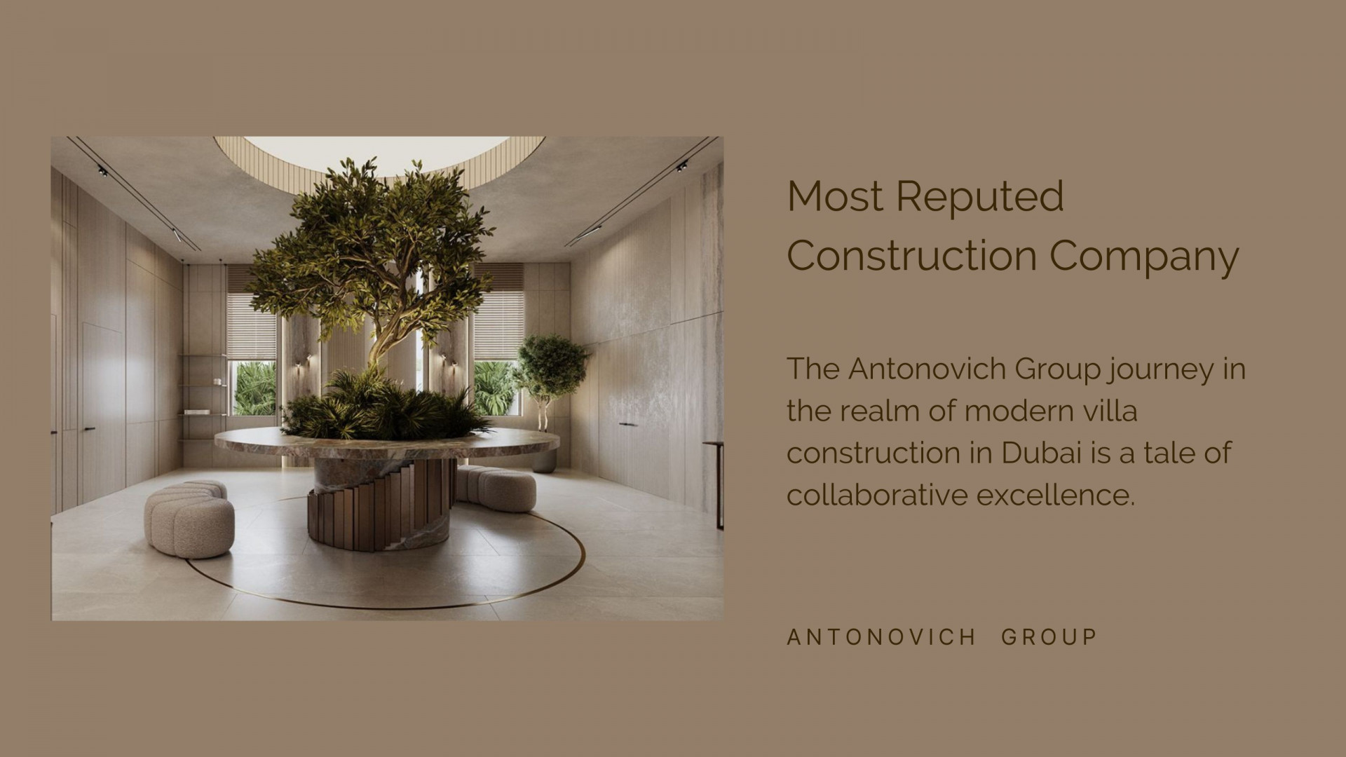 In the UAE, where construction is a dynamic and ever-evolving industry, Antonovich Group collaborates with some of the largest construction companies. This partnership ensures that their minimalist villa designs are not only visually striking but also structurally sound. By aligning with reputable construction contracting companies, Antonovich Group sets a precedent for the seamless integration of aesthetics and robust construction practices, including landscape and interior design.