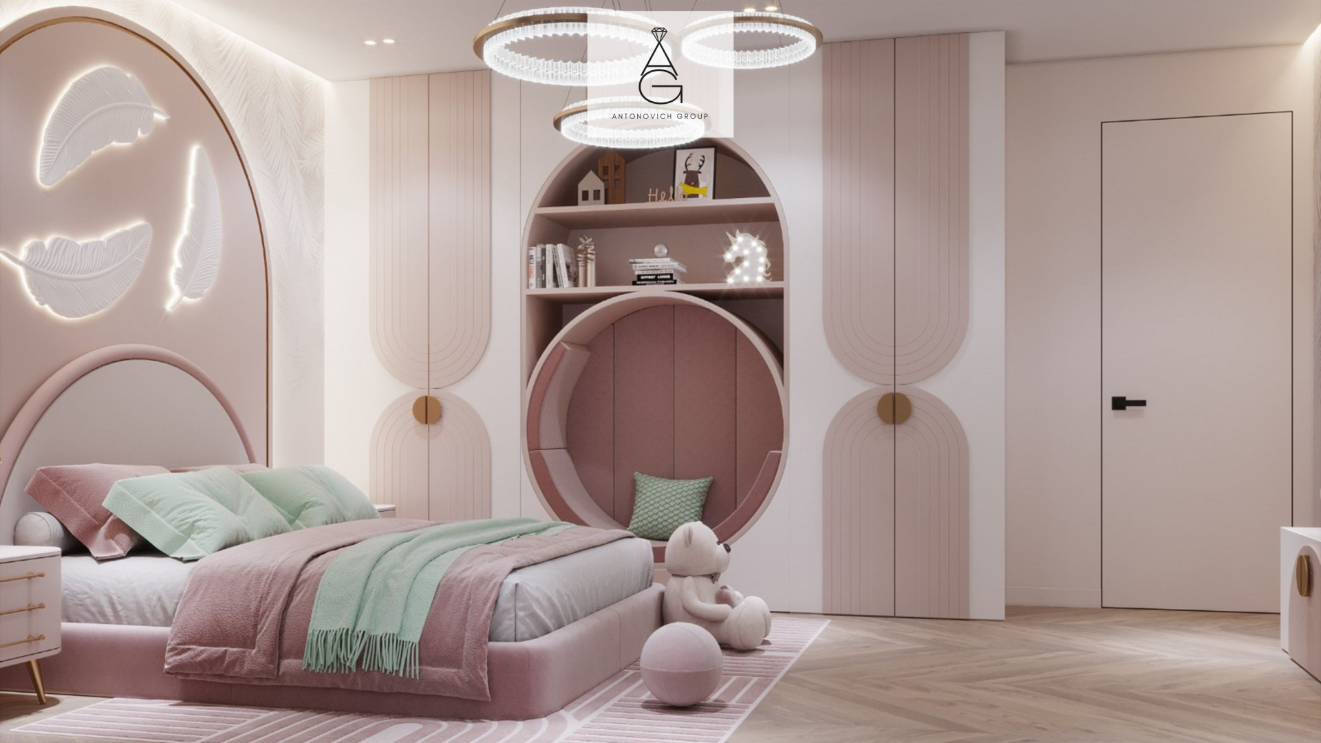 Antonovich Group emphasizes the importance of practical storage solutions that add a playful element to the room. Utilize colorful bins, wall-mounted shelves, or playful storage units that not only keep the space organized but also serve as decorative accents. Maximizing vertical storage helps in optimizing space without compromising on style. Their broader portfolio also includes master bedroom interior UAE projects with scalable storage ideas.