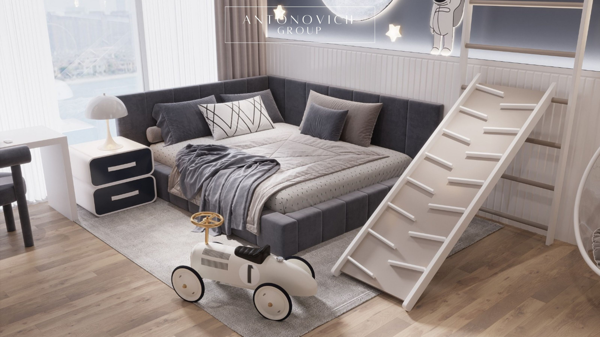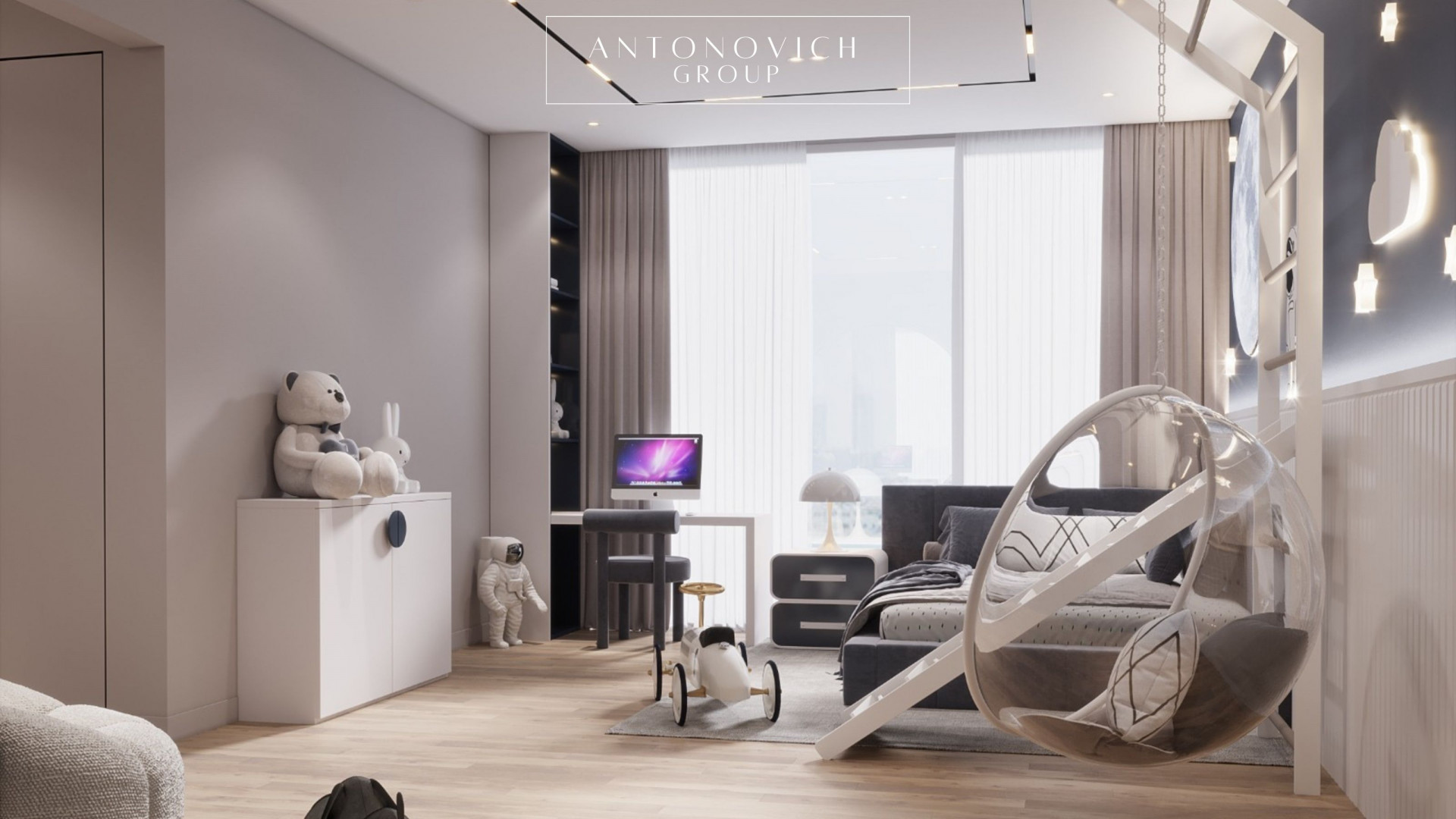 With Antonovich Group's expertise in kid's bedroom interior design and fit-out, you can transform your child's bedroom into a whimsical world of wonder and imagination. See examples from classic hotel hallway design to villa exterior designs. Contact us today to learn more about how we can bring the outer space theme to life and create a safe and inspiring space for your little explorer.