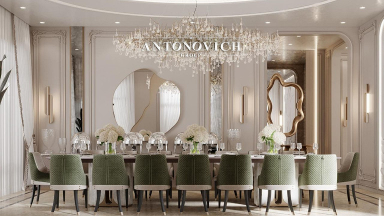 One cannot talk about classic dining room interior design without mentioning the iconic color palettes that define this aesthetic. The Antonovich Group understands the power of color in setting the tone for a space. They also share ideas that elevate your home with classic luxury. Rich, deep hues like deep reds, royal blues, and lush greens are often used to create a sense of warmth and intimacy. These colors, paired with luxurious gold accents, add a touch of regal charm that is quintessential to classic design. The Antonovich Group also embraces the concept of heirloom pieces in their classic dining room interiors. Each piece of furniture and decor is chosen not only for its beauty but also for its lasting quality. These principles appear in their Arabic majlis room designs, which blend tradition with comfort. The result is a space that not only looks stunning but also stands the test of time, becoming a cherished part of the family's history. One cannot overlook the importance of lighting in classic dining room interior design. The Antonovich Group understands that the right lighting can make or break the ambiance of a room. Ornate chandeliers, wall sconces, and table lamps are carefully chosen to provide both functional illumination and a touch of glamour. The interplay of light and shadow adds depth and dimension to the space, creating an enchanting atmosphere that enhances the dining experience. Their portfolio also highlights modern majlis interior design approaches. For decorative accents, see how gold transforms interiors in their guide to the timeless majesty of gold.