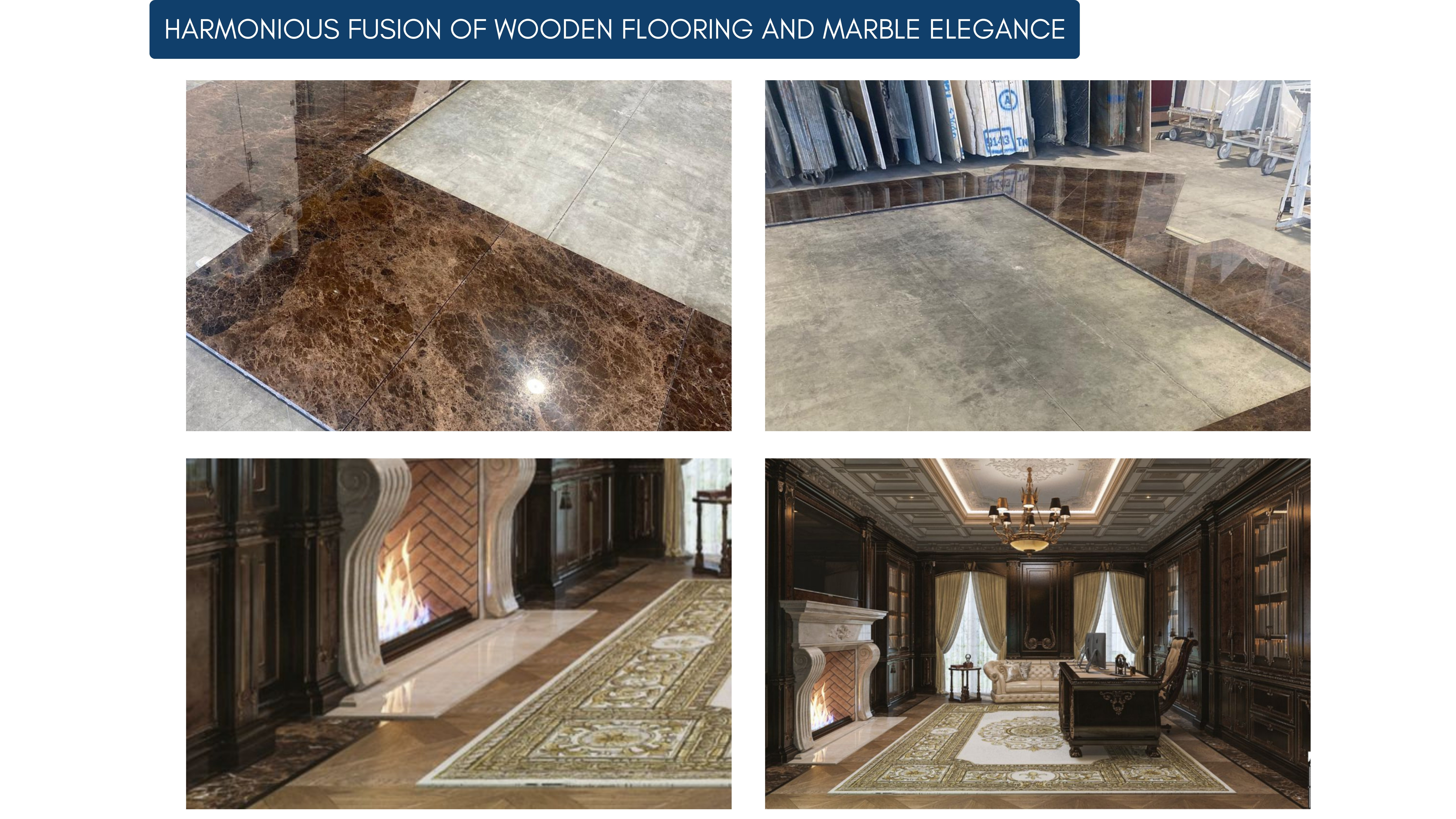We also specialize in creating a harmonious fusion of wooden flooring and marble elegance, offering clients the best of both worlds. The natural warmth of wood paired with the sophistication of marble creates a balanced, inviting atmosphere that is both luxurious and timeless.