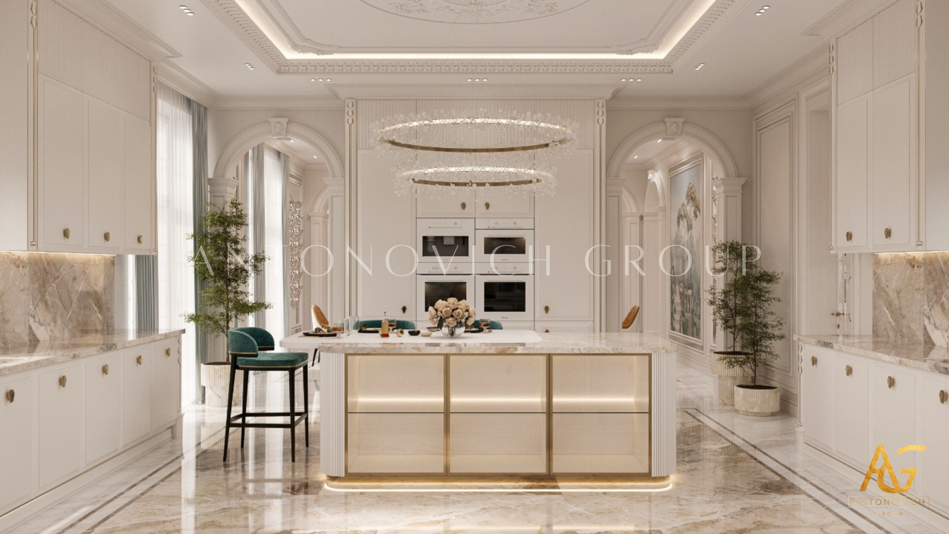 What sets Antonovich Group apart is our exceptional joinery service. Our master craftsmen bring decades of experience to every project, ensuring that each cabinet, drawer, and finishing detail meets the highest standards of elegant interior design. This attention to detail creates kitchens that are not just beautiful but built to last generations.