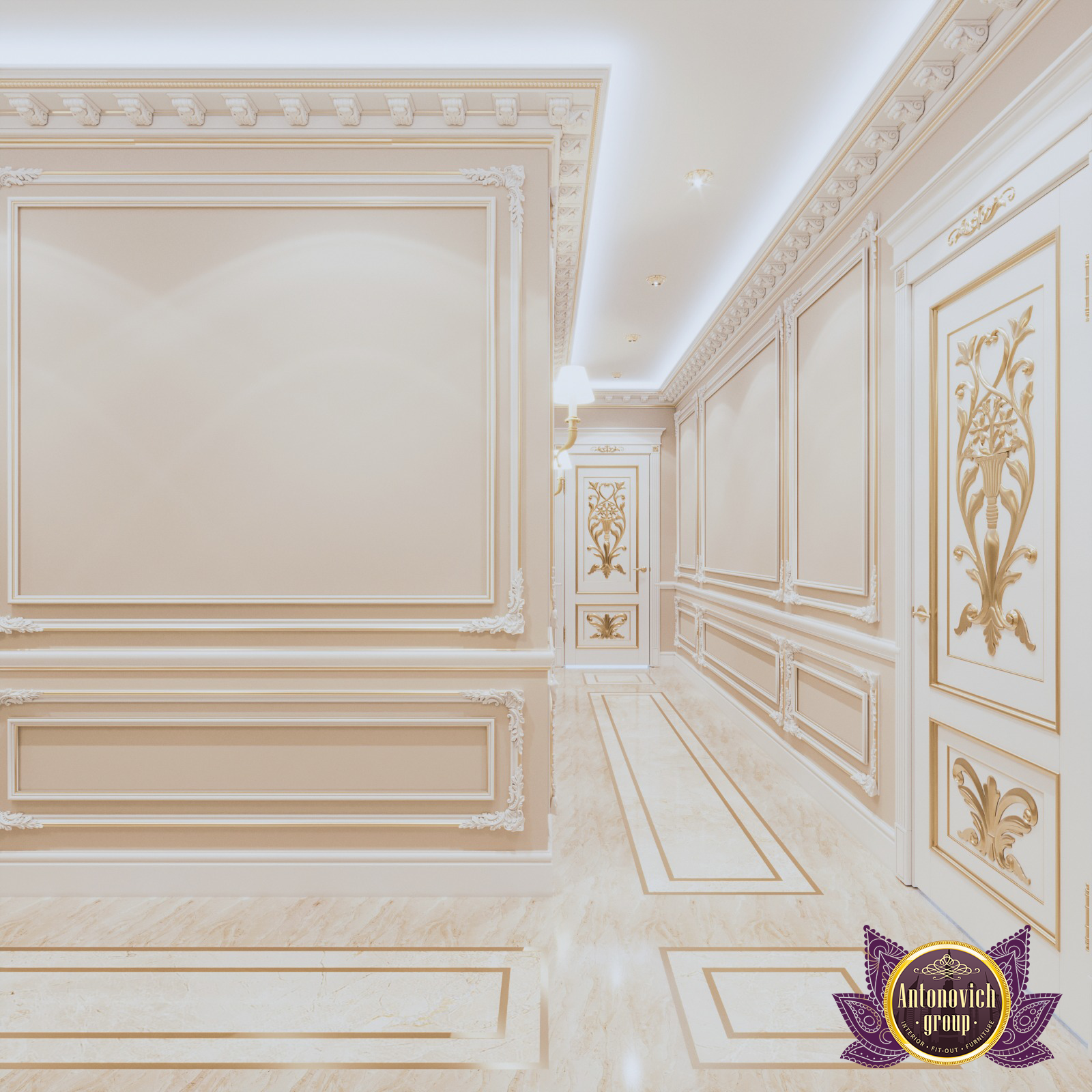 Mirrors framed in intricate filigree adorn the hallway, their reflective surfaces capturing the play of light and shadows. These mirrors serve not only as functional pieces but as portals into a different time, with influences drawn from Majlis design Abu Dhabi. As you catch a glimpse of your reflection, you can't help but wonder about the generations of guests who have done the same before you, leaving behind whispers of their presence. Glistening sconces cast a warm glow upon the hallway, casting enchanting patterns upon the walls. The interplay of light and shadow adds a touch of mystique, inviting you to embark on a journey of exploration within the hotel's labyrinthine corridors, echoing approaches seen in villa interior design in Meydan. These sconces are more than sources of illumination; they are beacons guiding you through a narrative woven with history and allure.