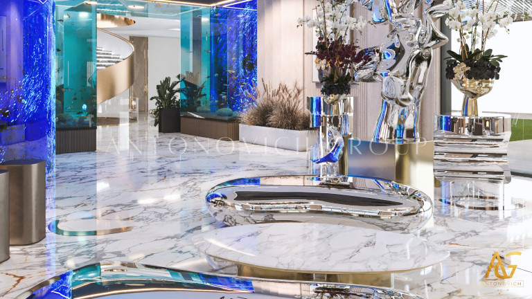 The World Island Villa stands as a testament to the future of luxury living, where innovation and elegance converge. With its futuristic underwater theme, this villa offers a unique living experience that is both captivating and serene. As a leading decor company in Abu Dhabi, Antonovich Group has masterfully crafted an interior that embodies the pinnacle of royal luxury interior design. For those seeking Dubai luxury homes interior that transcends the ordinary, the World Island Villa is the ultimate destination. Embrace the future of living with Antonovich Group and discover a world where the beauty of the ocean meets the sophistication of modern design.