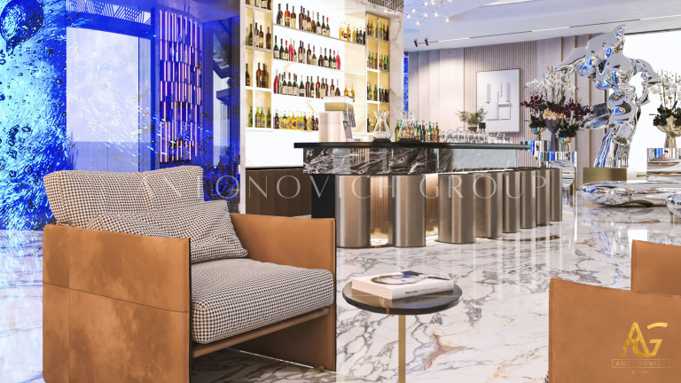 In the ever-evolving landscape of luxury real estate, the World Island Villa stands as a beacon of innovation and opulence. Situated amidst the breathtaking World Islands in Dubai, this villa embodies a futuristic underwater theme that merges cutting-edge technology with the grandeur of royal luxury interior design. Antonovich Group, a leading decor company in Abu Dhabi, featured among Dubai's luxury interior and furniture stores, brings this vision to life, crafting interiors that redefine the essence of luxury design in Dubai.