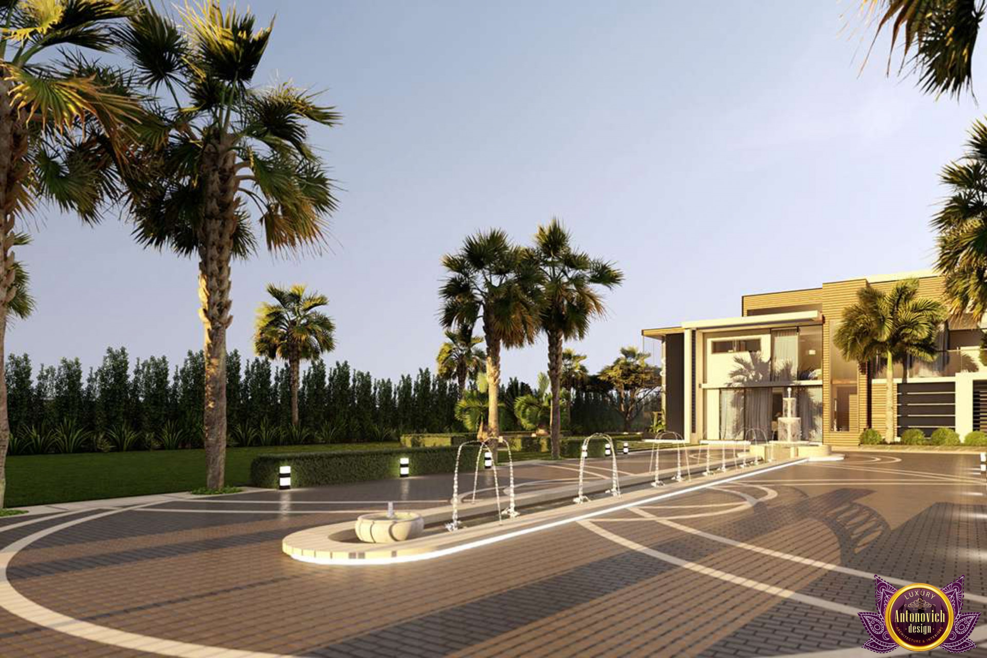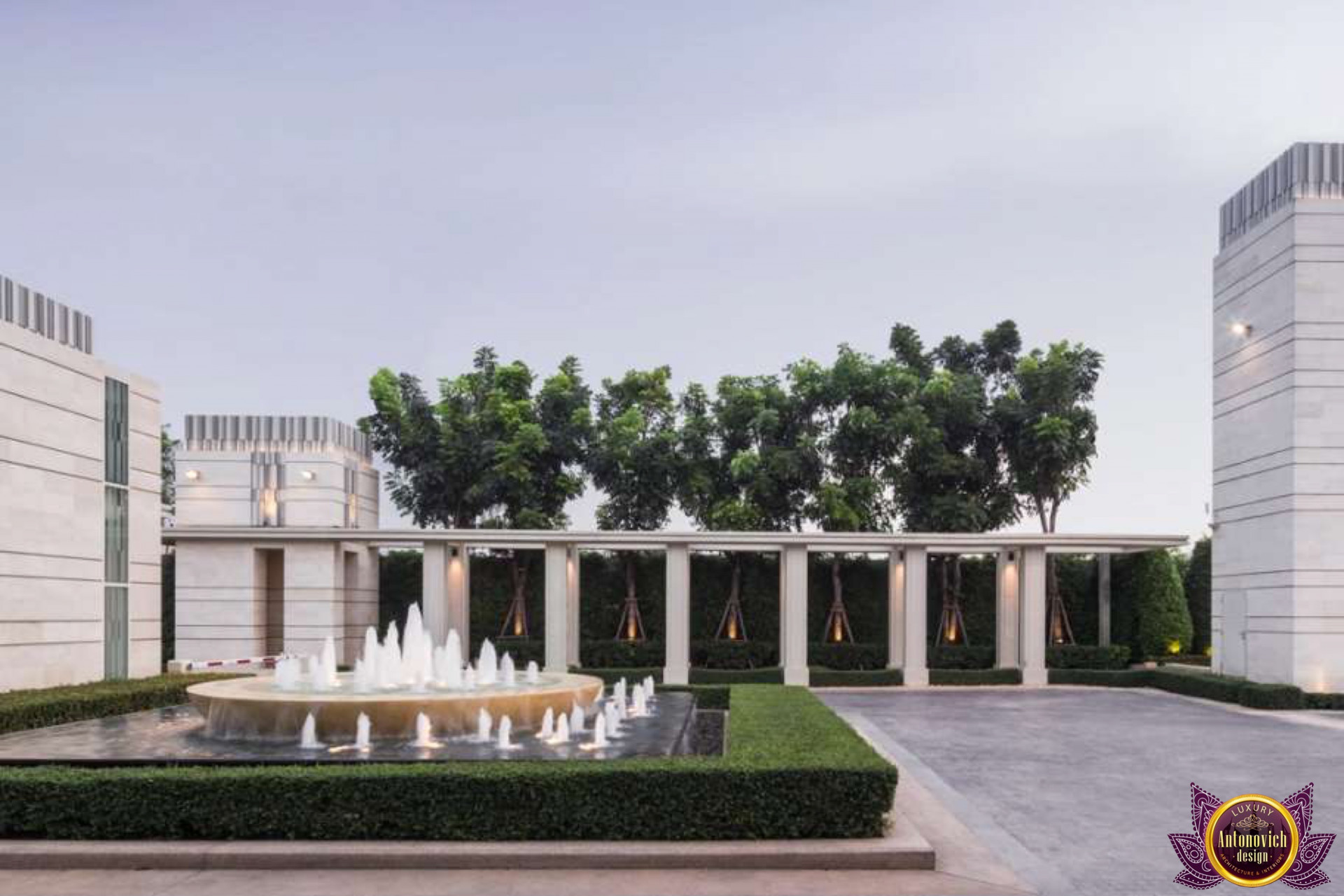 Patios, decks, and paths make the garden usable and give you a place to relax and enjoy the fruits of your labor; consider durable interlock and paver tiles for high-traffic paths. A large sitting area (one where the chairs can be pushed back without touching the edge) is ideal for enjoying the garden. Plants may be utilized as barriers to delineate sections within your landscape and to indicate where it ends. Plants may be used to create physical barriers in your environment by obstructing both views and access just like this luxury modern landscape design. Plants that are larger should be in the background, while those that are smaller should be in the front. This luxurious villa landscape design features a wide variety of plants for you to choose from. To get the most out of this luxury modern landscape design, we examine the yard, rooms, and within the house. Think about the flow between the garden and a contemporary living room. If your home favors open layouts, look at open-plan living room design for ideas. Your landscape, like your home, should have well-defined and well-planned rooms; efficiently utilizing your resources aids in the creation of separate "rooms" in your landscape. When selecting plants for this luxury modern landscape design, take in mind your numerous visual planes. Adjoining bedrooms should coordinate—select a modern bed frame to match the overall scale. For entrance signage and wayfinding, consider luxurious logo design. See regional examples such as luxury Antonovich Design in Saudi Arabia.