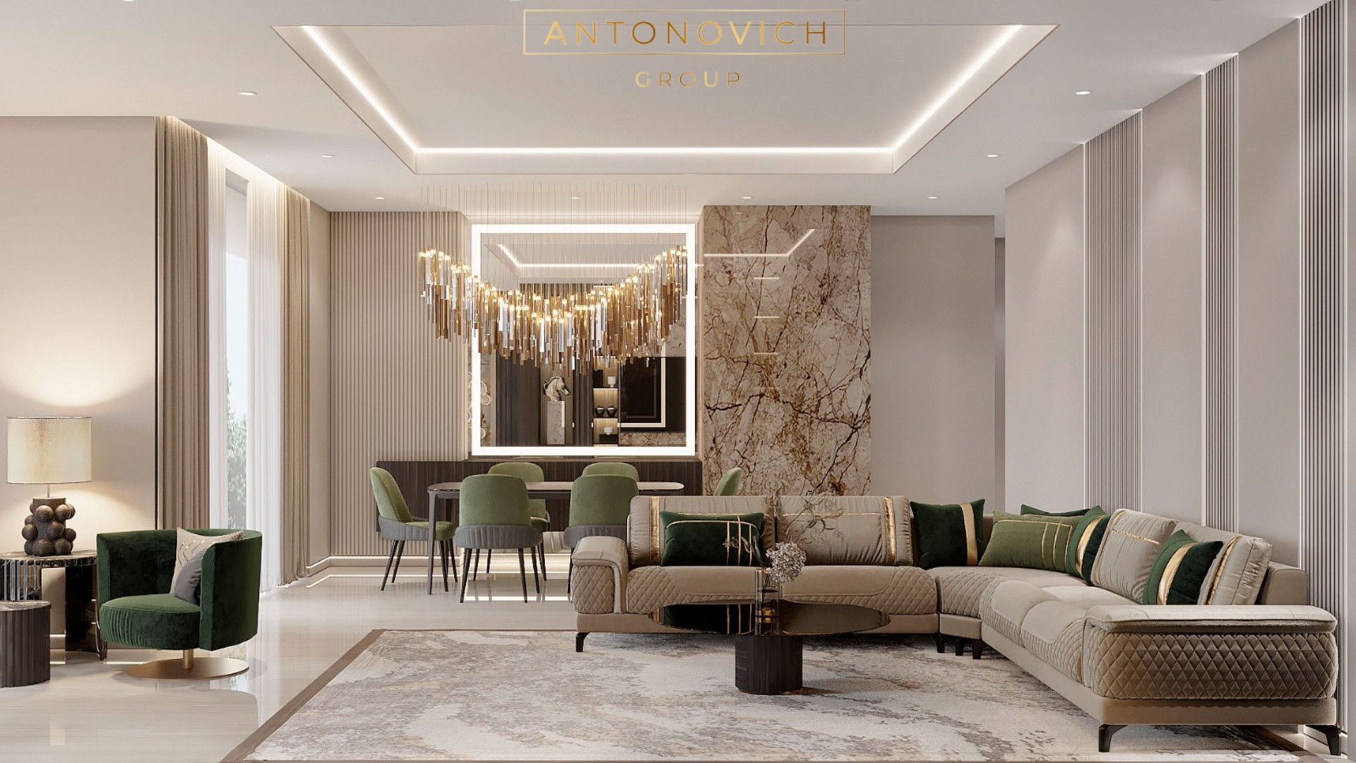 At Antonovich Group, we specialize in contemporary interior design in Dubai, creating living rooms that are both stylish and inviting. Our approach blends modern elegance with comfort, ensuring that each living space is not only visually stunning but also functional. We incorporate sleek lines, sophisticated color palettes, and high-quality materials to achieve a harmonious balance between aesthetics and practicality. We also apply similar principles to kitchens, including neoclassical kitchen design.